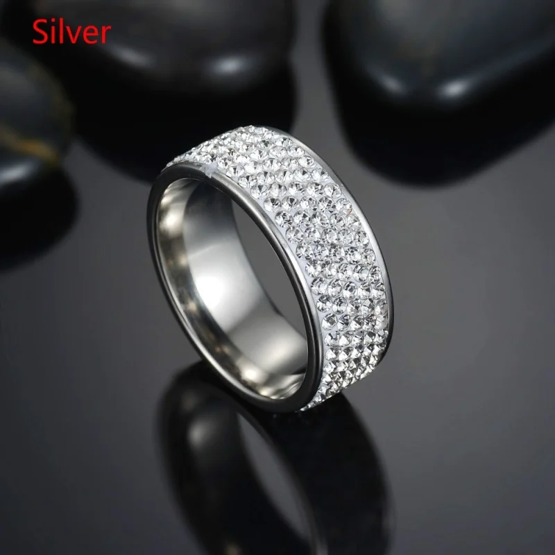 Женское Винтажное кольцо в стиле ретро, обручальное кольцо из нержавеющей стали с прозрачными кристаллами, 5 рядов