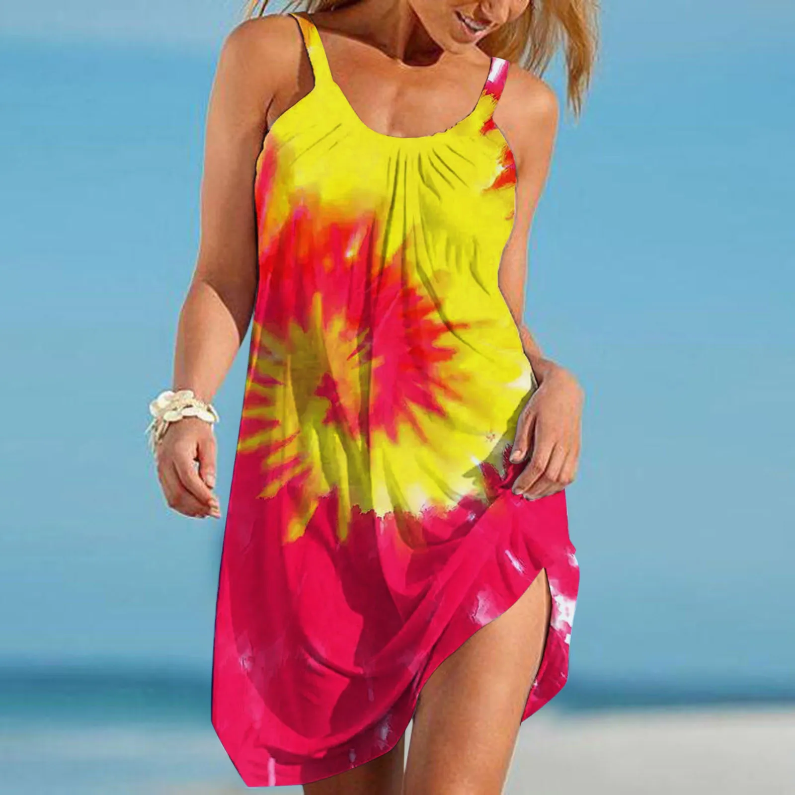 Платье на бретелях с цветочным принтом в стиле бохо, праздничное Приморское повседневное свободное на бретелях, женское пляжное платье, пуловер, винтажное платье 40 #