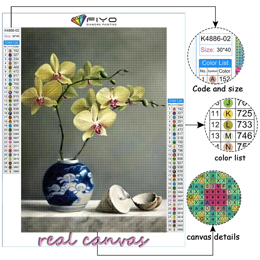 Квадратнаякруглая Алмазная 5D картина FIYO, цветок ваза-корзина, эк...