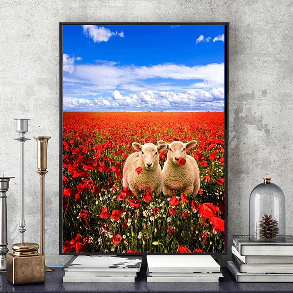 Алмазная живопись 5D сделай сам, мозаика из овец, макового цветка, полноразмернаякруглая Алмазная вышивка с животными, домашний декор