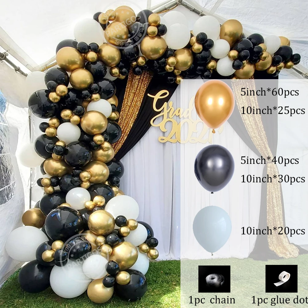 177 шт металлические черные и золотые воздушные шары-гирлянды арочный комплект Белые латексные шарики для Выпускной свадьбы День рождения украшения