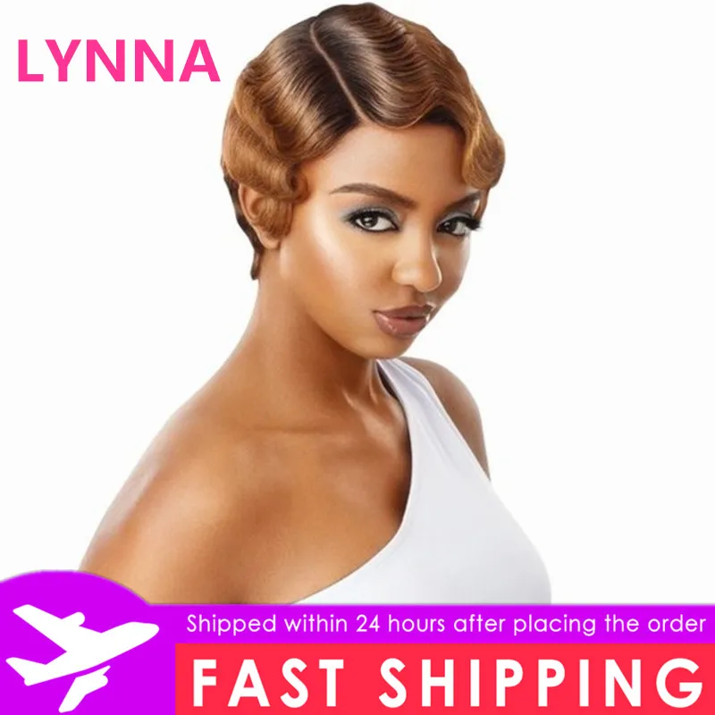 LYNNA короткие волосы, парики машинной работы, дешевые прямые челов...