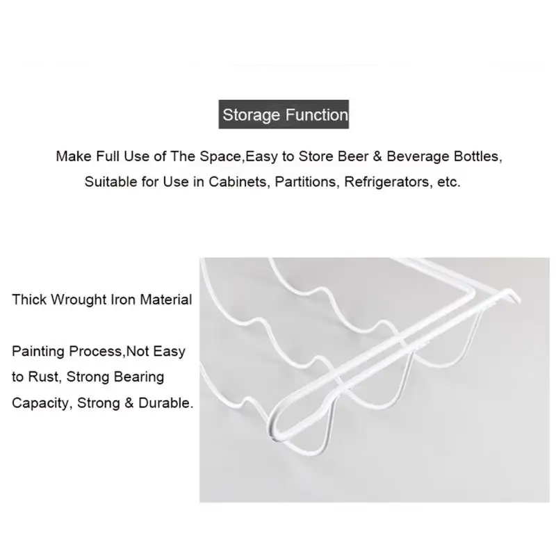 【Wine Rack】: Это металлическая стойка для бутылки вина в холодильнике, которую можно легко скользить на полки для холодильника для хранения любимого вина, пива или некоторых других бутылок для напитков. Будь то развлекательная семья и друзья или согласование дизайна вашего дома, эта Винная стойка является лучшим стилем и удобством.