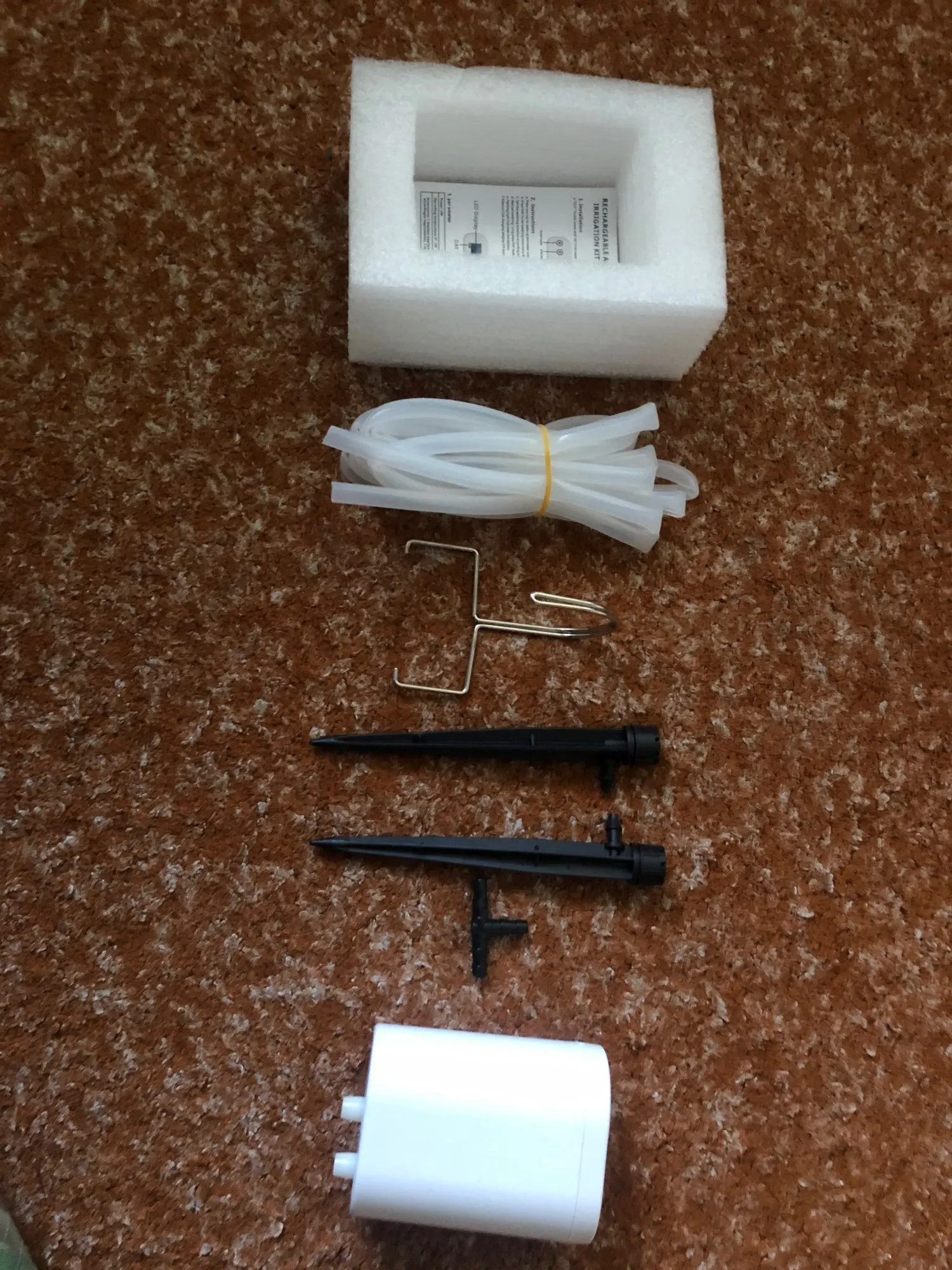 Контроллер * 1, спринклер * 2, тройник * 1, крючок * 1, водопровод * 3 м