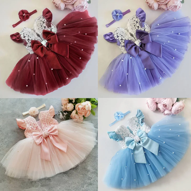 Платье для маленьких девочек кружевное платье принцессы для детей ясельного возраста, на день рождения вечерние одежда; Элегантное детское свадебное платье-пачка с бантом; Платье на выпускной, От 2 до 5 лет