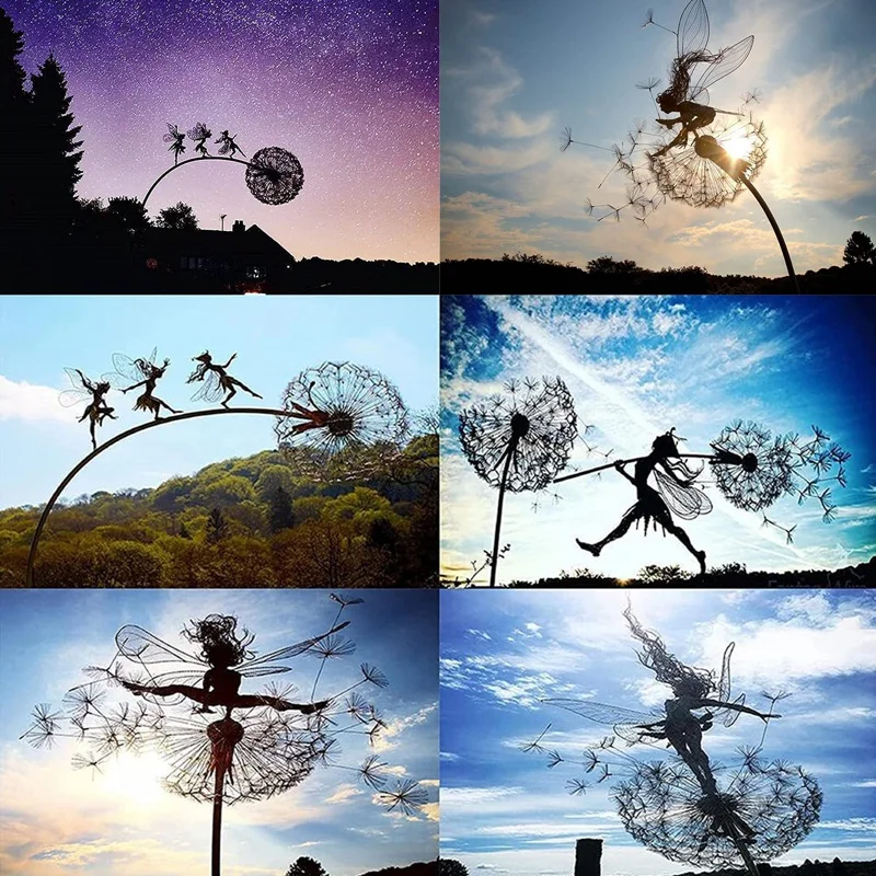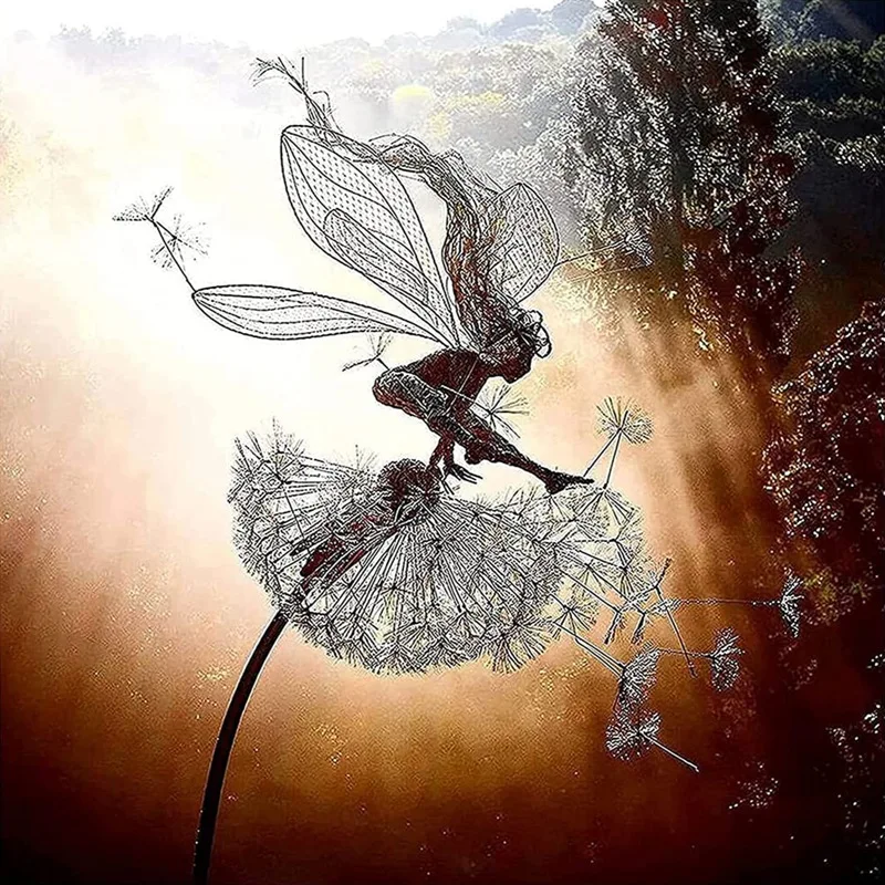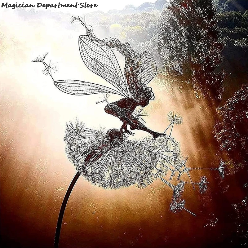 Скульптура с одуванчиком и эльфом для танцев, садовая металлическая Ремесленная проволока со стальным проводом, интеллектуальная богиня Elfs