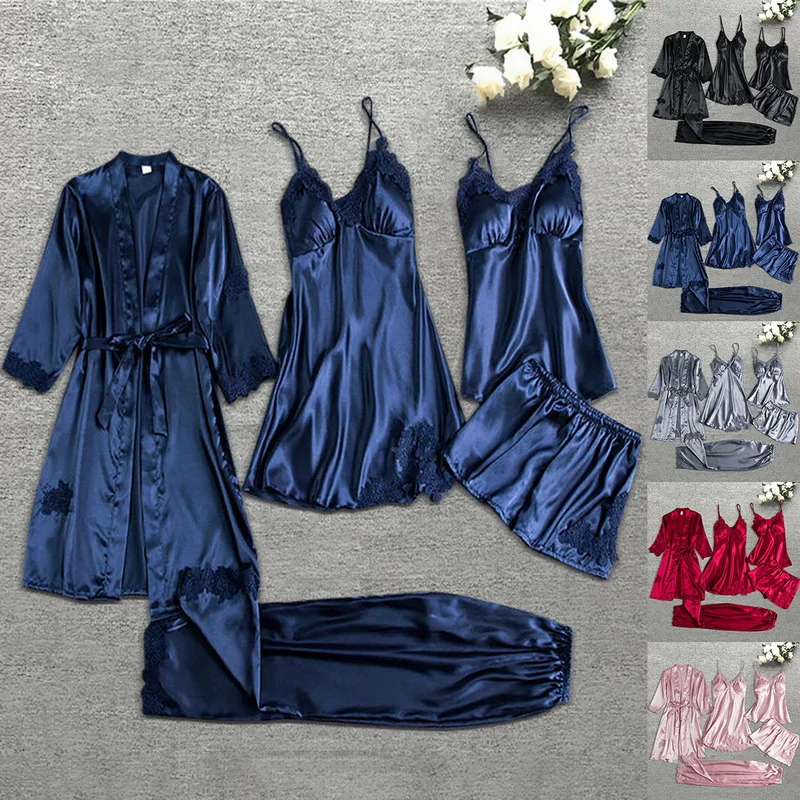 Соблазнительные женские модельные туфли-5 шт. Пижама Ночные сорочки с острым вырезом Одежда Домашняя пеньюар ночное белье Пижама Весна ночная рубашка халат, одежда для сна