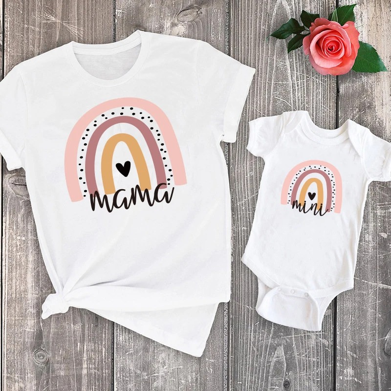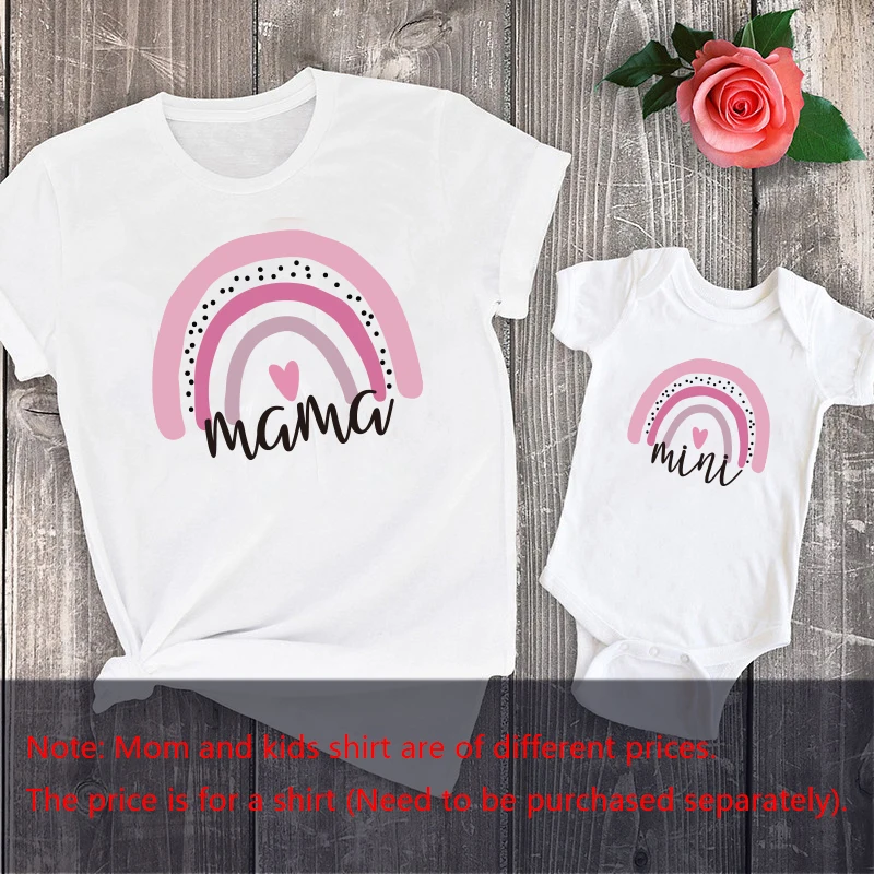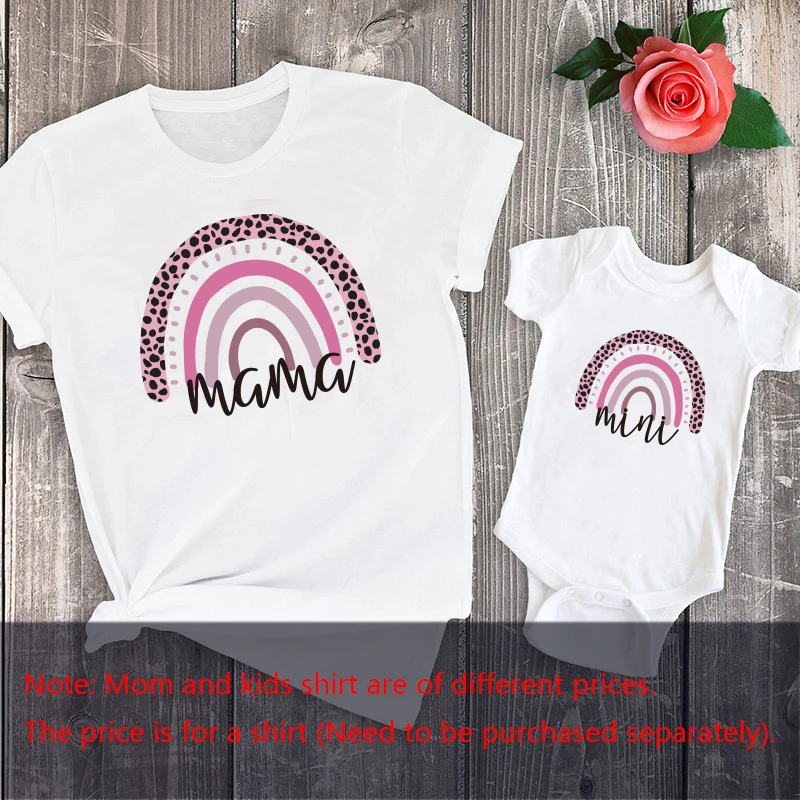 2021 модная сочетающаяся одежда для мамы и семьи хлопковая летняя Радужная футболка для мамы и Мини Милая семейная одежда Топ