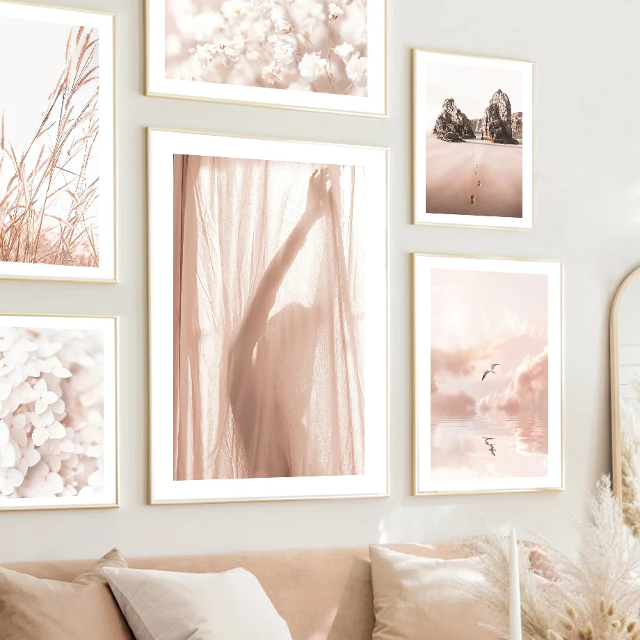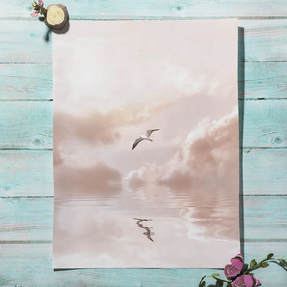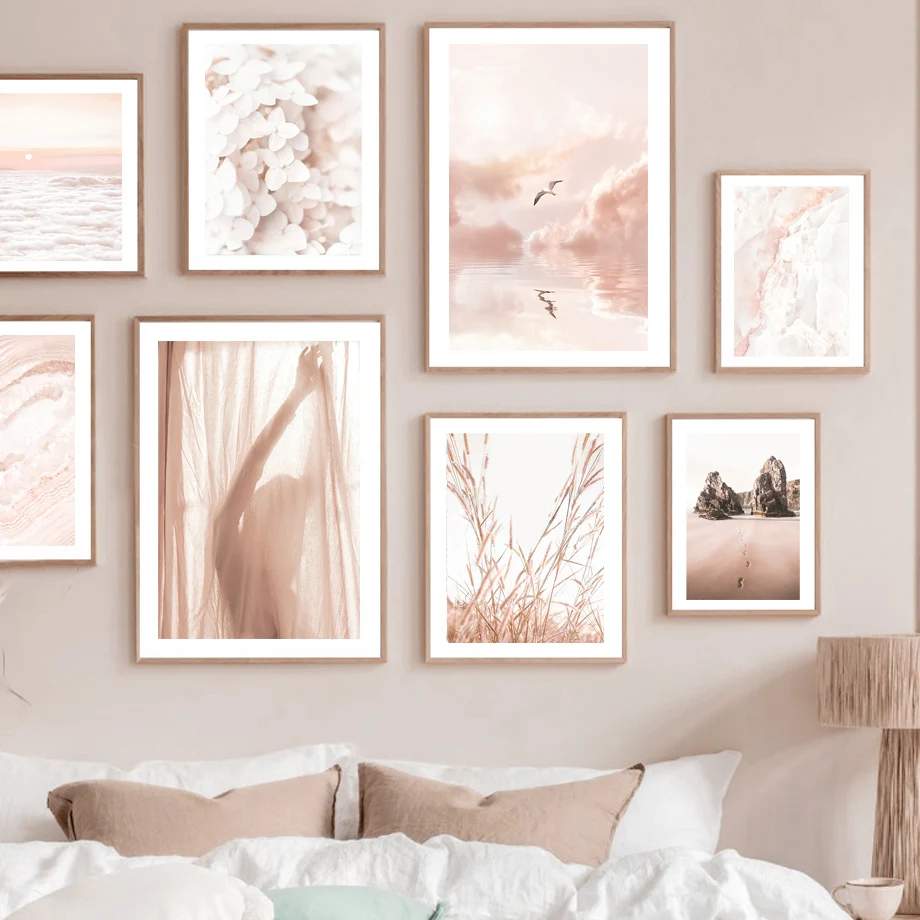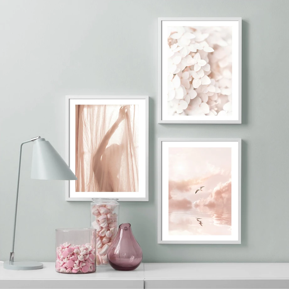 Шелк девушка над облаками птица небо цветок розовый мрамор стены искусства Печать холст Картина скандинавский плакат Декор картина для гостиной