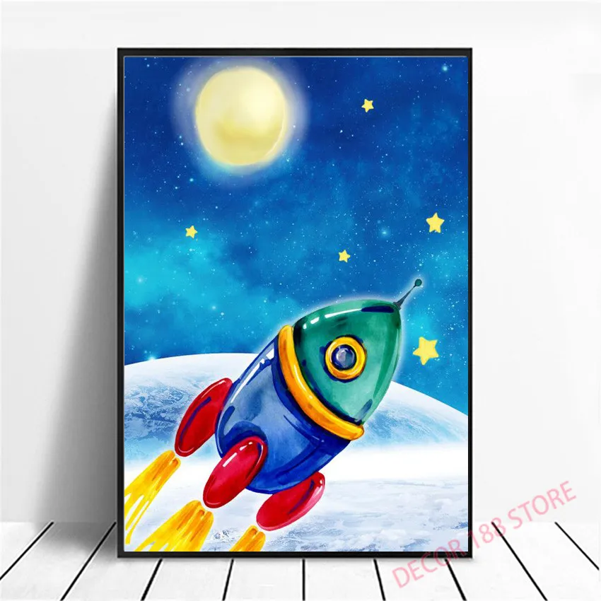 Космос подвеска в виде космонавта и планеты ракета земля НЛО детская стена искусство холст живопись плакаты и принты настенные картины Детская комната Декор