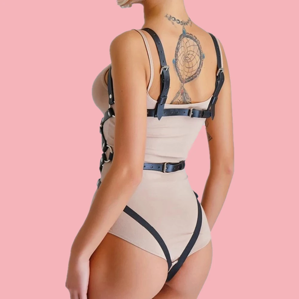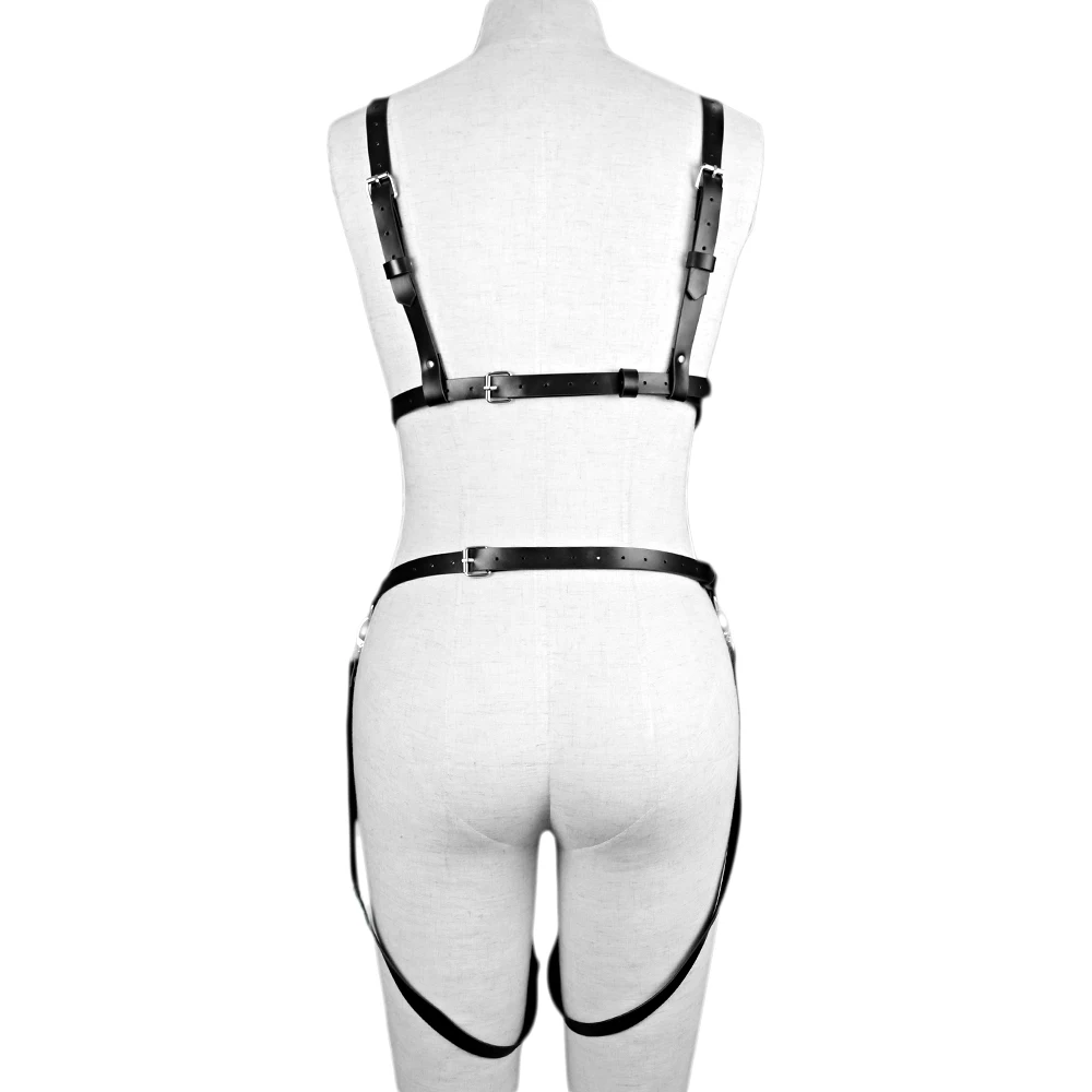 Женский кожаный костюм с ремнями, сексуальное боди в готическом стиле