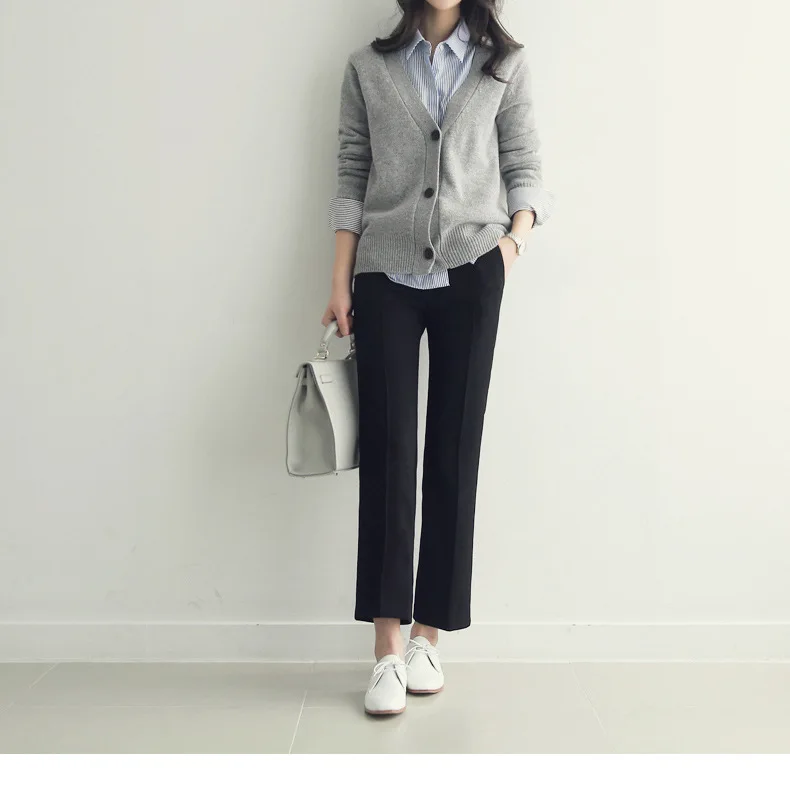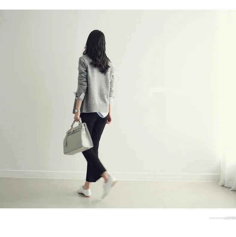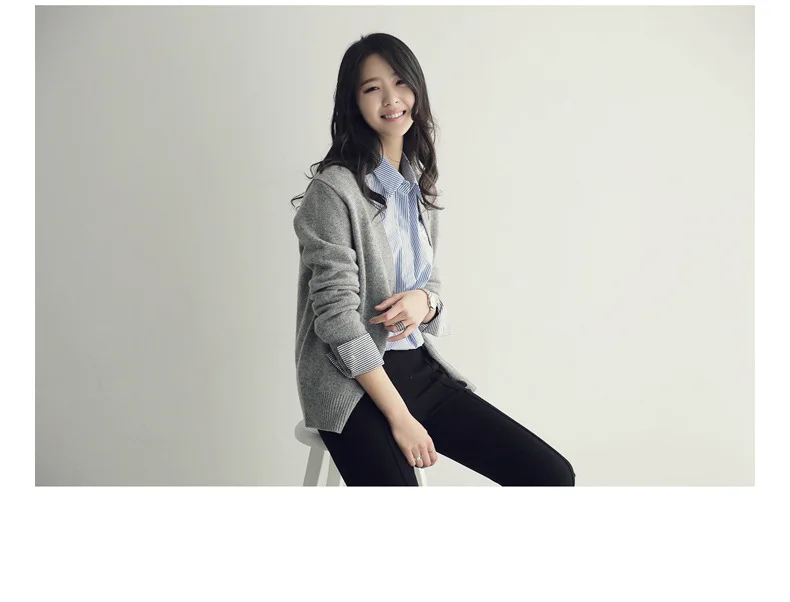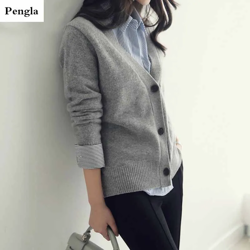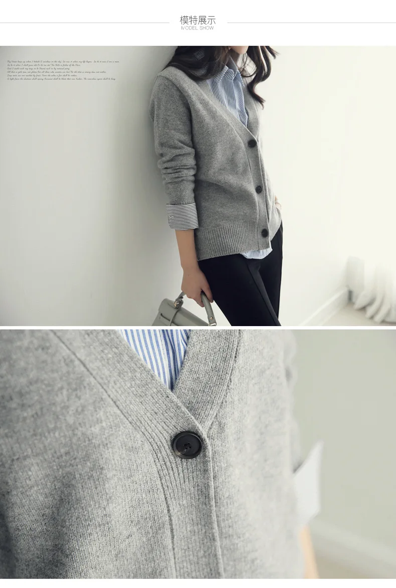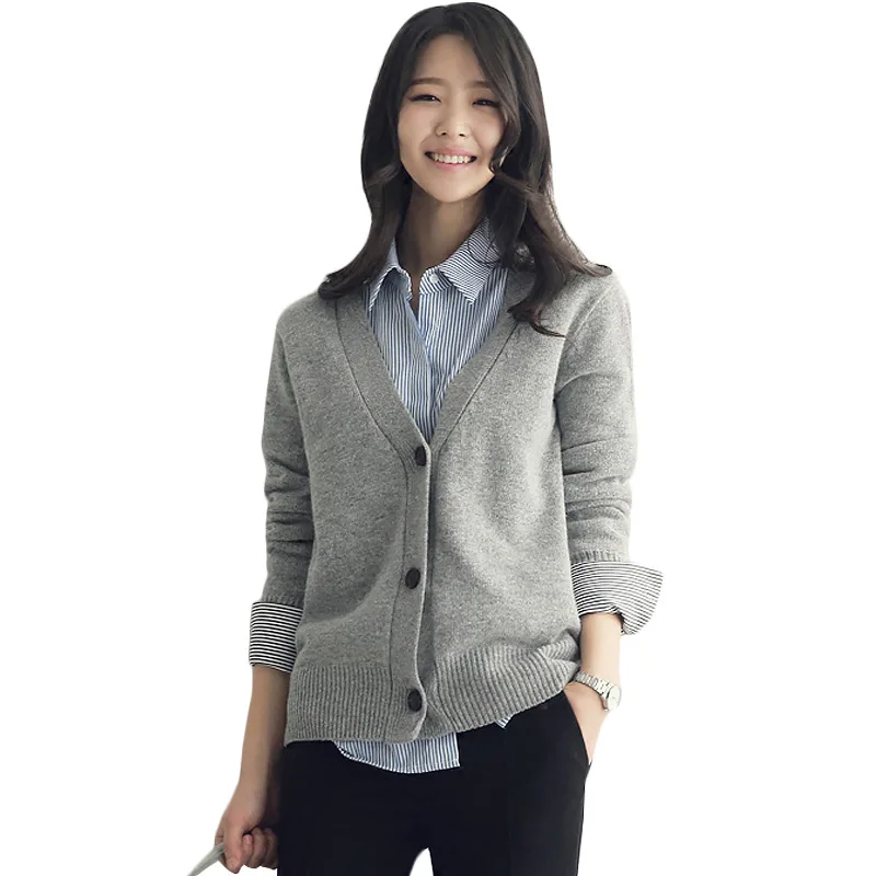 Женский трикотажный кардиган с V-образным вырезом, серого цвета