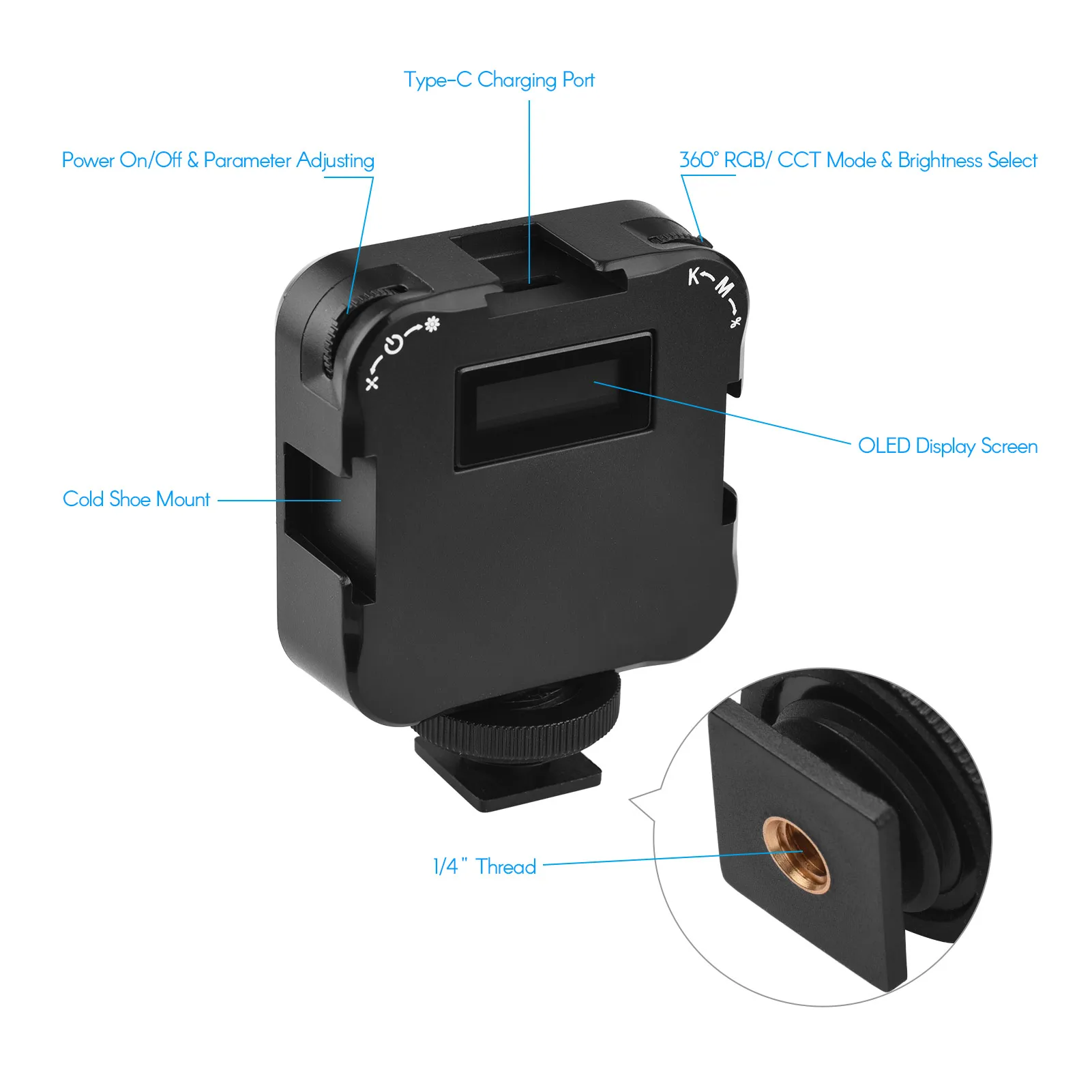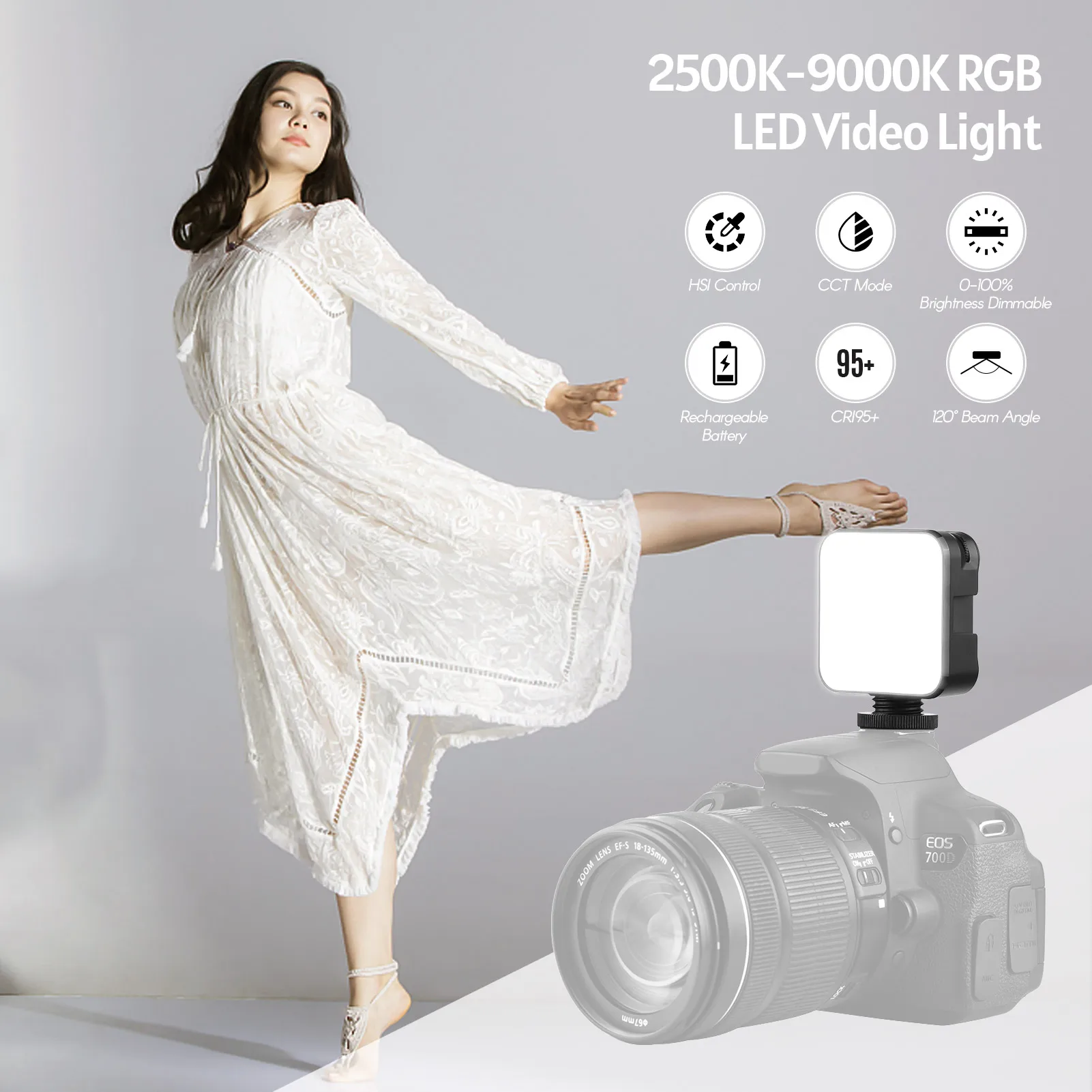 Полноцветная заполняющая лампа Andoer 360 , минисветильник светодиодный светодиодная RGB-лампа для видеосъемки, 6 Вт, 2500-9000K, CRI95 +, со светодиодным экраном O для прямой трансляции Vlog