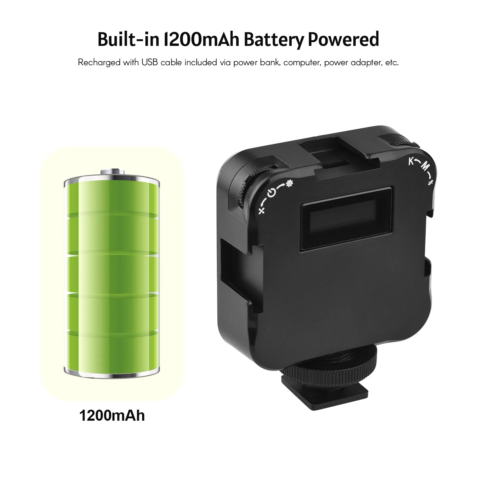 Мини-светильник RGB имеет полноцветный режим 360 ° и режим Дневной светильник, свободно настраиваемый, красочный светильник, эффекты для видеосъемки.Особенности:Светодиодный мини-светильник RGB для видеосъемки:Видео светильник особенности 2500-9000K Цветовая температура, с 360 ° полноцветный RGB светильник и машина для изготовления холодного/Теплый день светильник режимов для того чтобы удовлетворять различные эффект потребности.Тройное крепление для холодной обуви:Оснащен тройными креплениями для холодной обуви, расширениями, такими как микрофон или несколько огней, доступны для универсального использования.Перезаряжаемая батарея 1200 мАч:Встроенная перезаряжаемая батарея емкостью 1200 мАч обеспечивает долгий срок службы. Разработан с oled-экраном для отображения батареи, HSI, цветовой температуры в режиме реального времени.Type-C для USB-A зарядки:Удобный USB-A зарядки, светильник может заряжаться через внешний аккумулятор, компьютер или адаптер питания, более удобный для зарядки.Широкое применение:В светильник может быть широко используется в для фото-и видеокамеры светильник для наполнения и портрет, в онлайн-чате, телефон, видеоблог, обеспечивая даже и мягкий светильник.Характеристики:Бренд: AndoerЦветовая температура: 2500-9000KМощность: 6 ВтБусины лампы: 68 шт.CRI: >95Угол луча: 120 °Питание: встроенный аккумулятор 3,7 V/ 1200mAh батареяРазмеры: 7,5*6*2,5 см/2,95*2,36 * 0.98inВес нетто: 77 г/2,72 унцийПосылка Размеры: 8,5*7,5*3,5 см/3,35*2,95 * 1.38inПосылка Вес: 99 г/3,49 ozУпаковочный лист:1 * RGB видео светильник1 * USB кабель для зарядки1 * Руководство пользователя