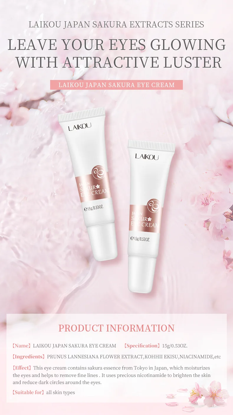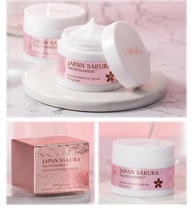 ①Japan Sakura крем для лица.②Эта сыворотка богата Сакурой эссенцией, делая кожу влажной и мягкой. Фермент Sakura оказывает воздействие на сужение пор, балансируя секрецию кожи водой и маслом, омолаживая кожу и удаляя акне. Сакура гликозидов может помочь коже противостоять окислению, осветить тон кожи и эффективно уменьшить существующие пятна.③ Японский крем для глаз Sakura.④Japan Sakura моющее средство может глубоко очистить поры, чтобы легко удалить грязь, масло и макияж. Содержит экстракт цветка Prunus Lannesiana и Niacinamide, увлажняет и восстанавливает поврежденную кожу, чтобы помочь коже против старения.