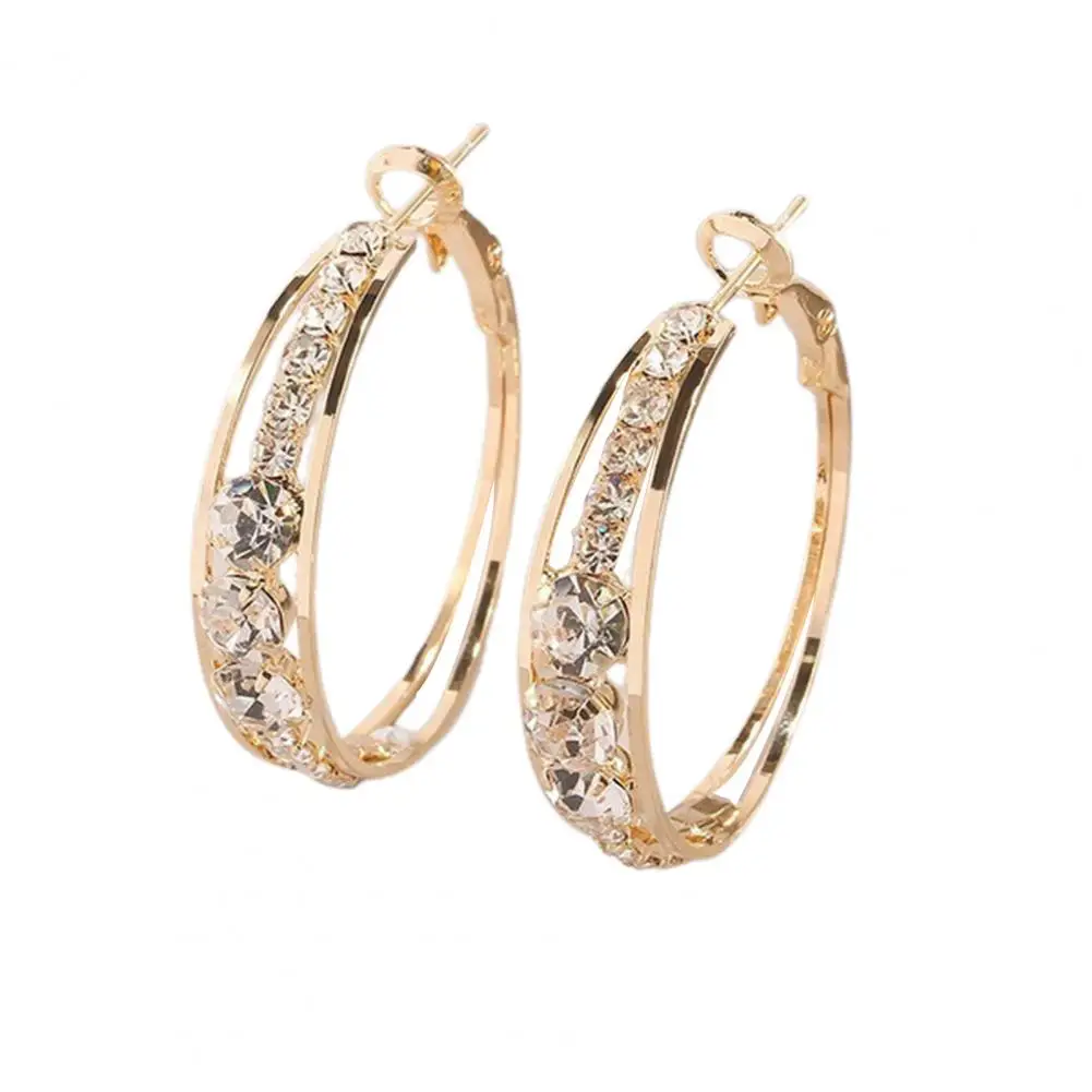 Для женщин, серьги в ретро стиле, привлекательный блестящие стразы инкрустированный обруч серьги пирсинг ювелирные изделия для вечерние модные украшения вечерние