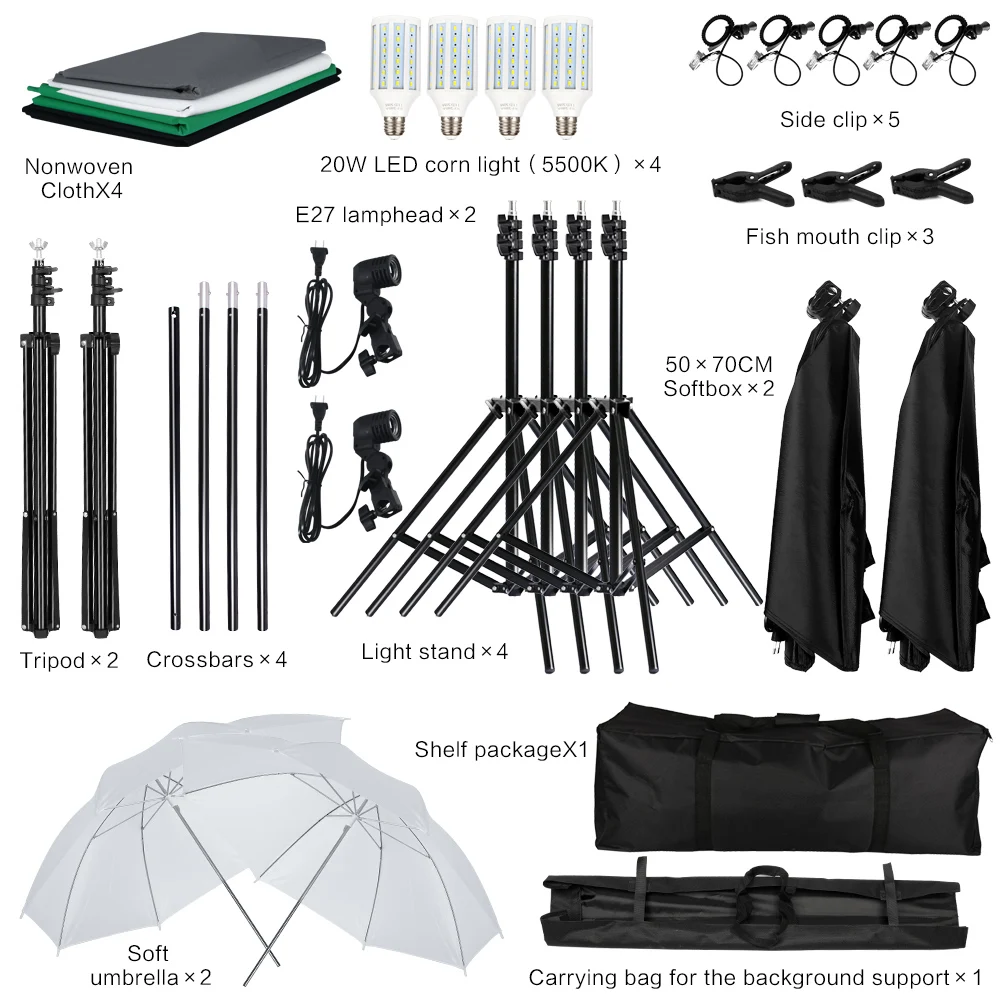 Осветительный комплект для фотостудии, набор софтбоксов осветительный Трипод светильник стойка для фона, поддержка зеленого фона, зонтик, фотография, видео съемка