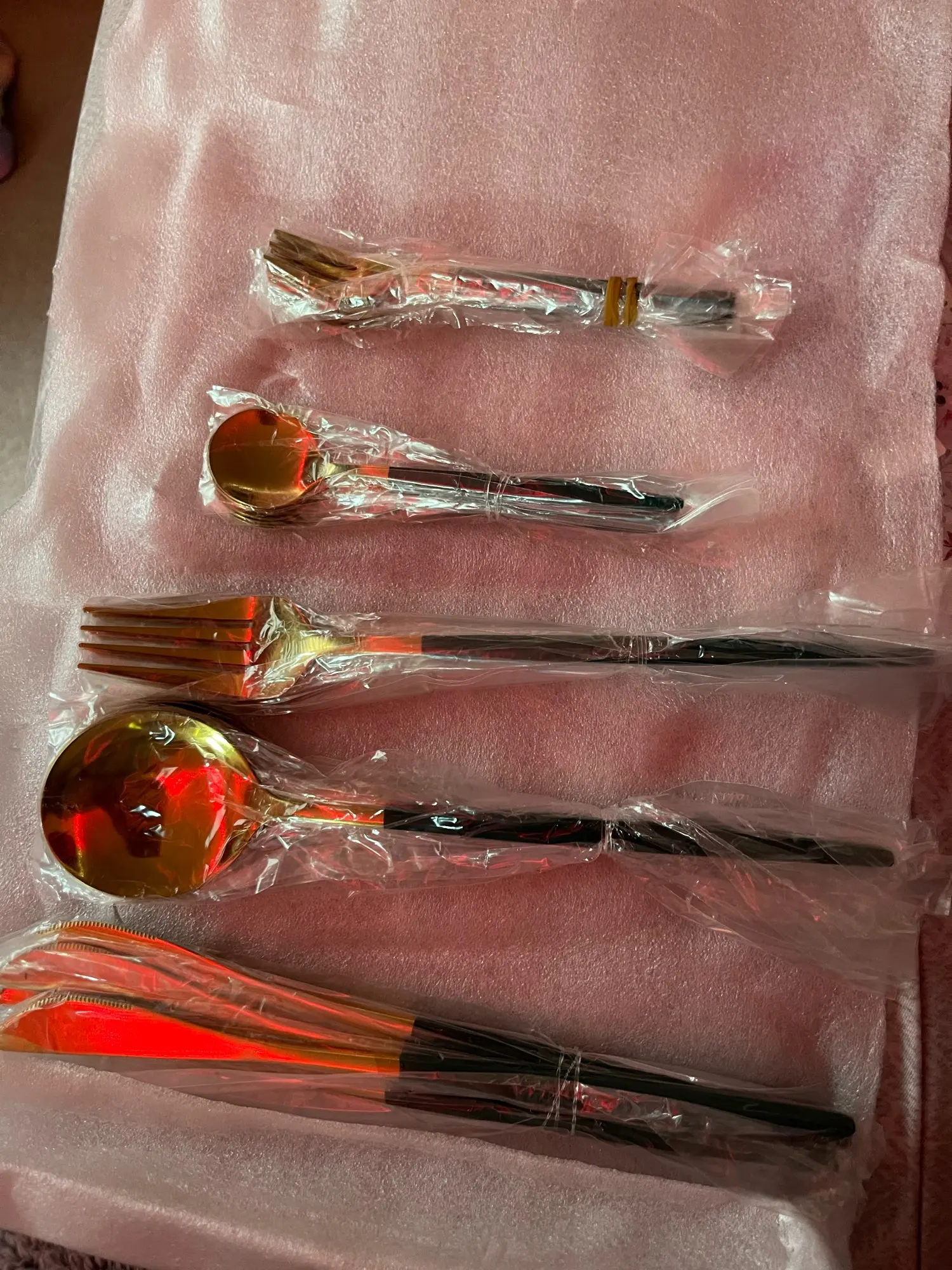 Набор позолоченных столовых приборов, 24 шт., вилка, кофейная ложка...