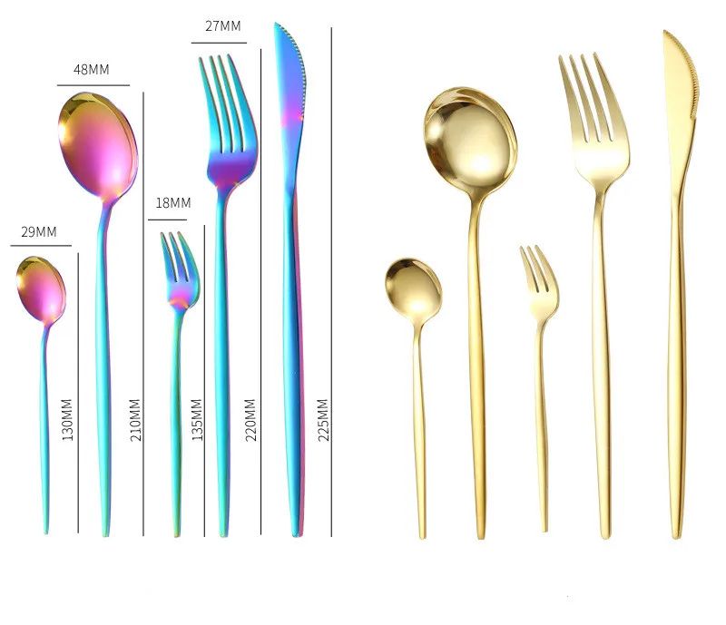 Золотистый 30 шт. стейк Ножи вилка, кофейная ложка чайная ложка Din...