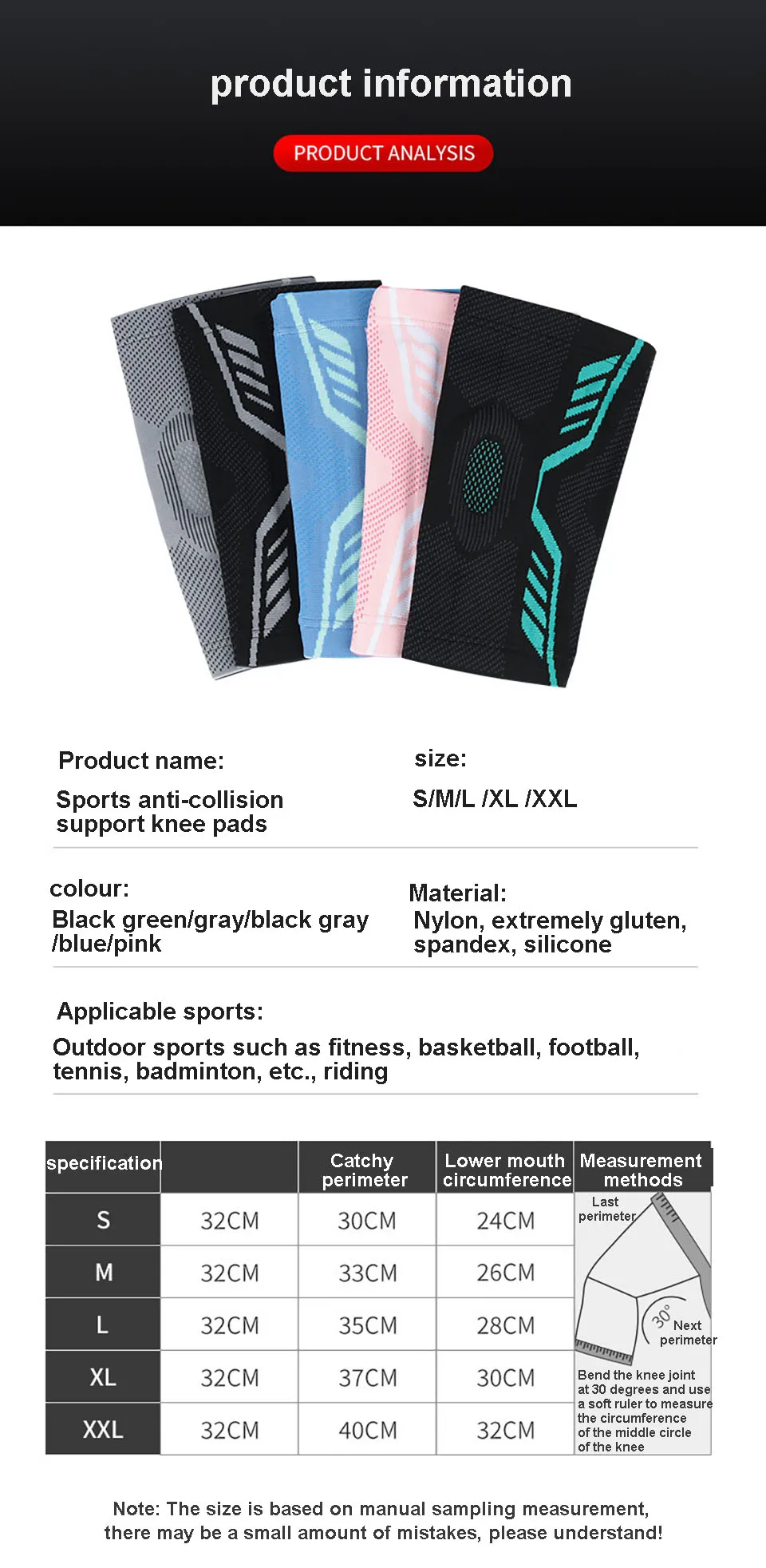 Особенность: 1. Двойная поддержка рыбьей чешуи-хороший наколенник Мягкая двойная пружинная опорная планка, поддержка наколенников и экономия усилий 2. Мягкий силикон, защищает колени В изделии используется большая мягкая силиконовая подушка, чтобы обернуть все колено, чтобы уменьшить вероятность травм 3. Ткань вязаная эластичная, градиентное давление Эластичное Трикотажное, удобное и дышащее, компрессионное колено 4. Силиконовая противоскользящая полоса, не соскальзывает вниз Противоскользящая полоса, не скользит во время тренировок, снижает давление во время тренировок Спецификация: Название продукта: силиконовые Пружинные эластичные спортивные наколенники Цвет: черный/серый Размер: M/L/XL Материал: нейлон + спандекс + силикон Применимая сцена: Фитнес-снаряжение/корзина для ног Спорт/Спортивное Защитное снаряжение аксессуары/Велоспорт Спорт/спортивные тренды/другие Мячи Спорт/Боевые искусства самооборона/Оборудование для отдыха на поле/Рыбалка Спорт/танцевальные виды спорта/оздоровительный массаж/Бег Спорт/пеший Туризм Кемпинг/стрельба Спорт/настольный теннис/Бадминтон/Музыкальные инструменты/спортивные сумки на открытом воздухе/ледовые и снежные виды спорта/фитнес и бодибилдинг/экстремальные вызовы/шахматы и карточные развлечения/плавание И болота Будь то пружина: опорная пружина с обеих сторон Силикон: колено Сделано из силикона Описание упаковки: прозрачный пакет OPP Посылка тация: 1 шт. * спортивные наколенники Примечание: 1. Цвет товара на фотографии может немного отличаться. 2. Возможны отклонения в 1-2 мм из-за ручного измерения. Спасибо. 3. Если есть какие-либо проблемы с продуктом, пожалуйста, свяжитесь со мной, прежде чем оставить комментарий, я сделаю все возможное, чтобы решить вашу проблему. Спасибо за понимание.
