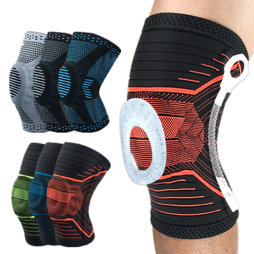 Бандаж на коленный сустав, силиконовая пружина, полная поддержка коленного сустава, компрессионный фиксатор мениска, спортивные подкладки корзина для бега