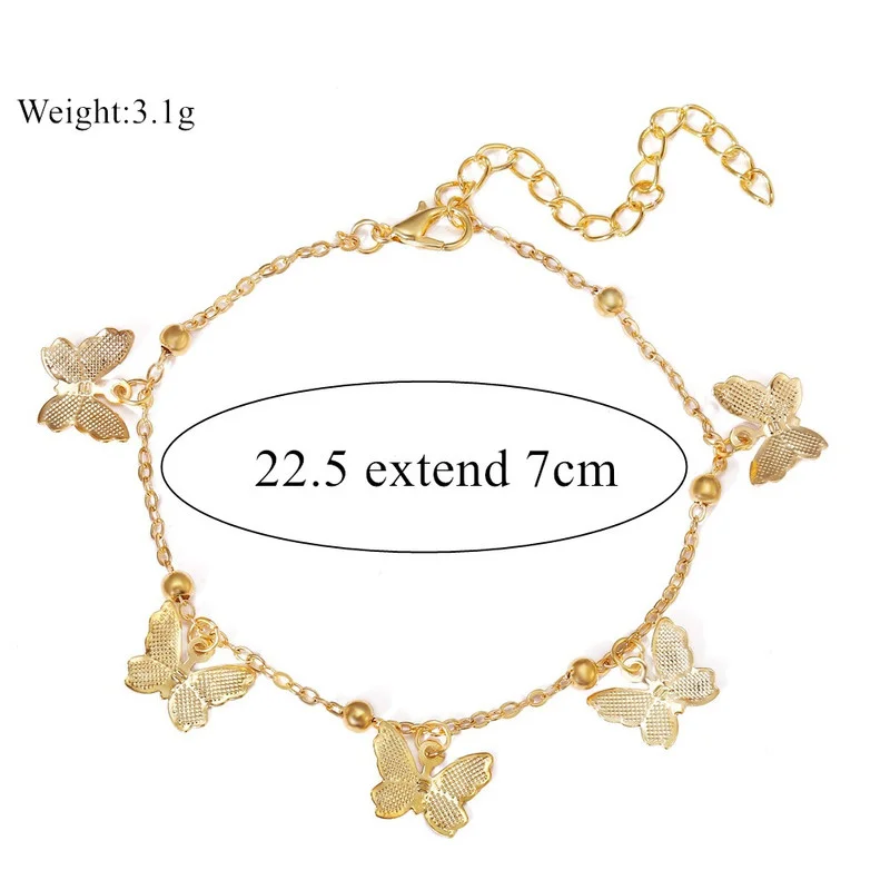 Модные браслеты на ногу с бусинами-бабочками для женщин, золотистые...
