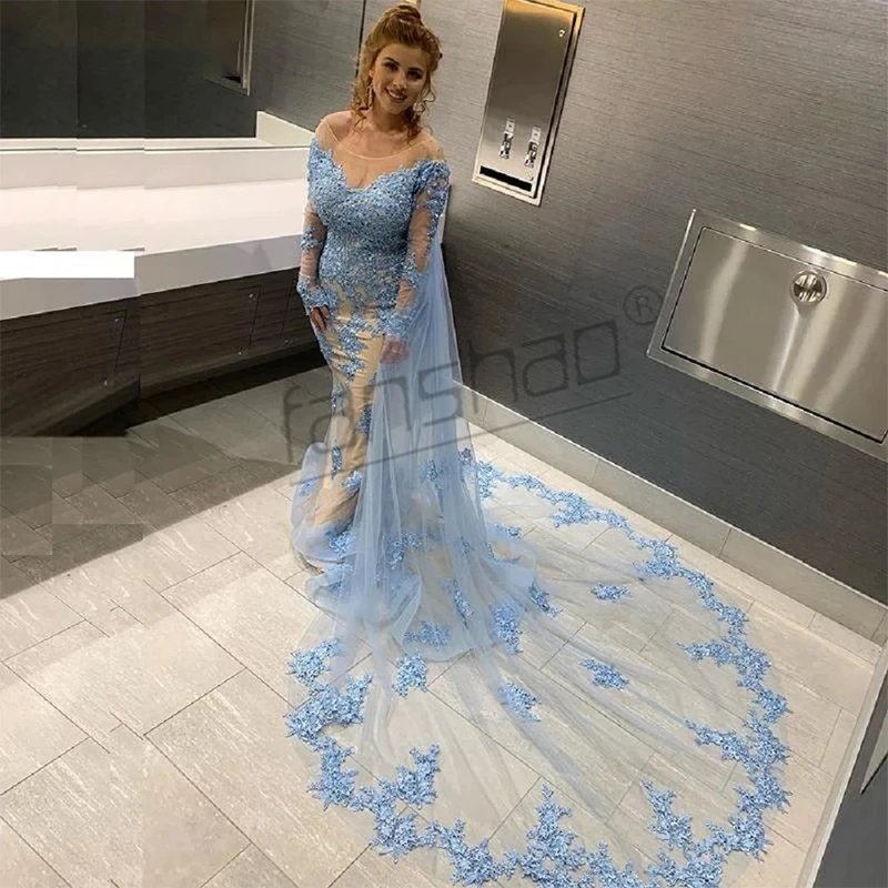 Женское вечернее платье Fanshao, голубое платье с овальным вырезом