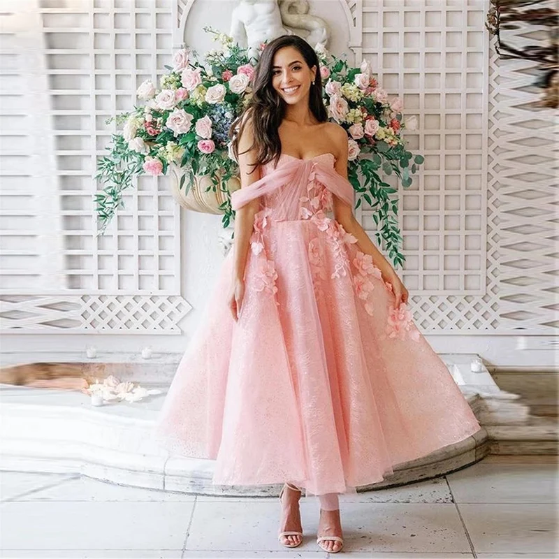 Изысканные розовые вечерние платья с открытыми плечами и бусинами, ...