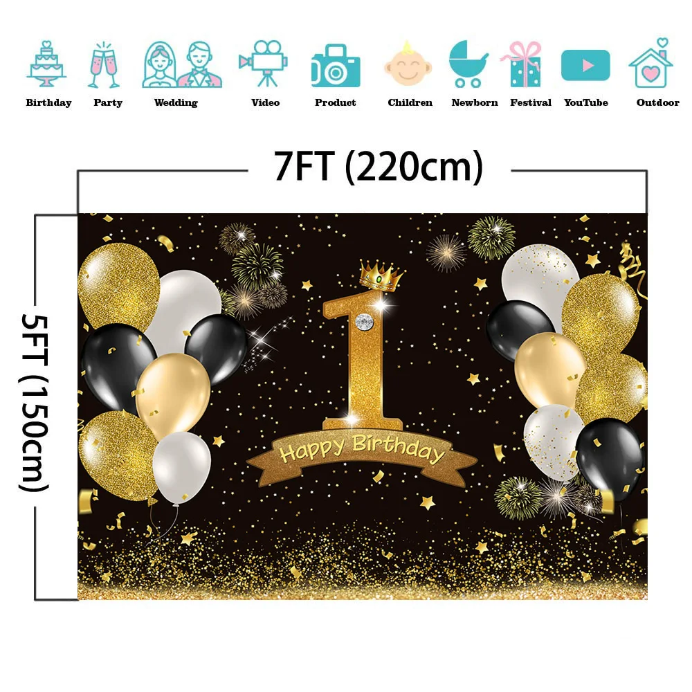 Фотофон Mocsicka с блестками на 1-й день рождения, воздушный шар, фейерверк, один день рождения, фотостудия, Золотая Звезда