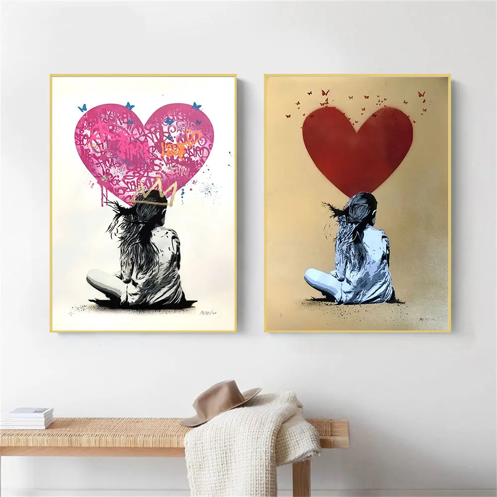 Настенный художественный плакат красная розовая любовь девушка печать абстрактный плакат на холсте Живопись Художественная Картина для гостиной домашний декор Caudros