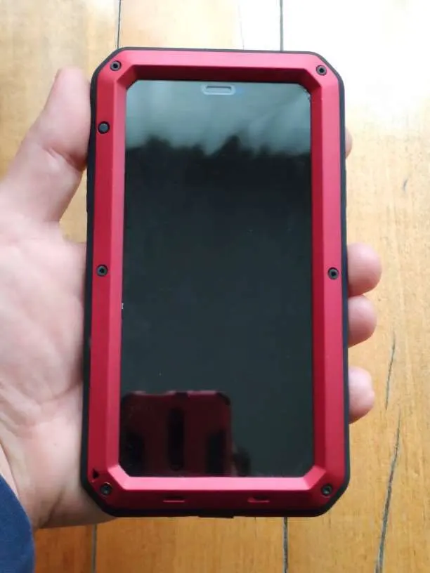 Это потрясающе. Чехол выглядит хорошим качеством и прочностью. Он большой. Очень большой на iPhone XR. Выглядит большой даже в мужских руках. Имеет резиновый защитный чехол внутри металлического корпуса и защитный экран сверху.