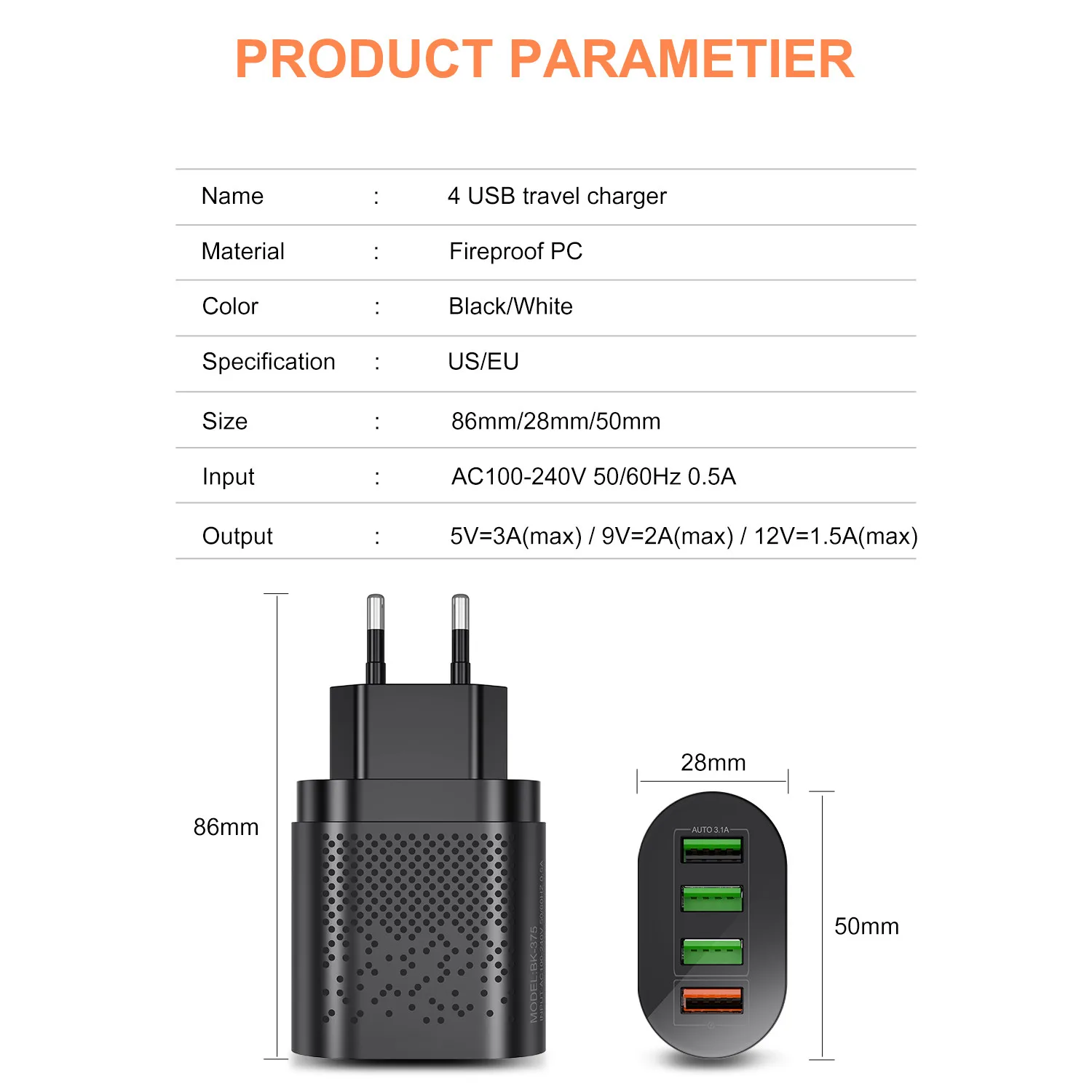4 порта USB зарядное устройство с функцией быстрой зарядки 3,0 порт...