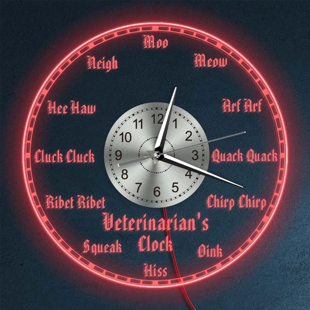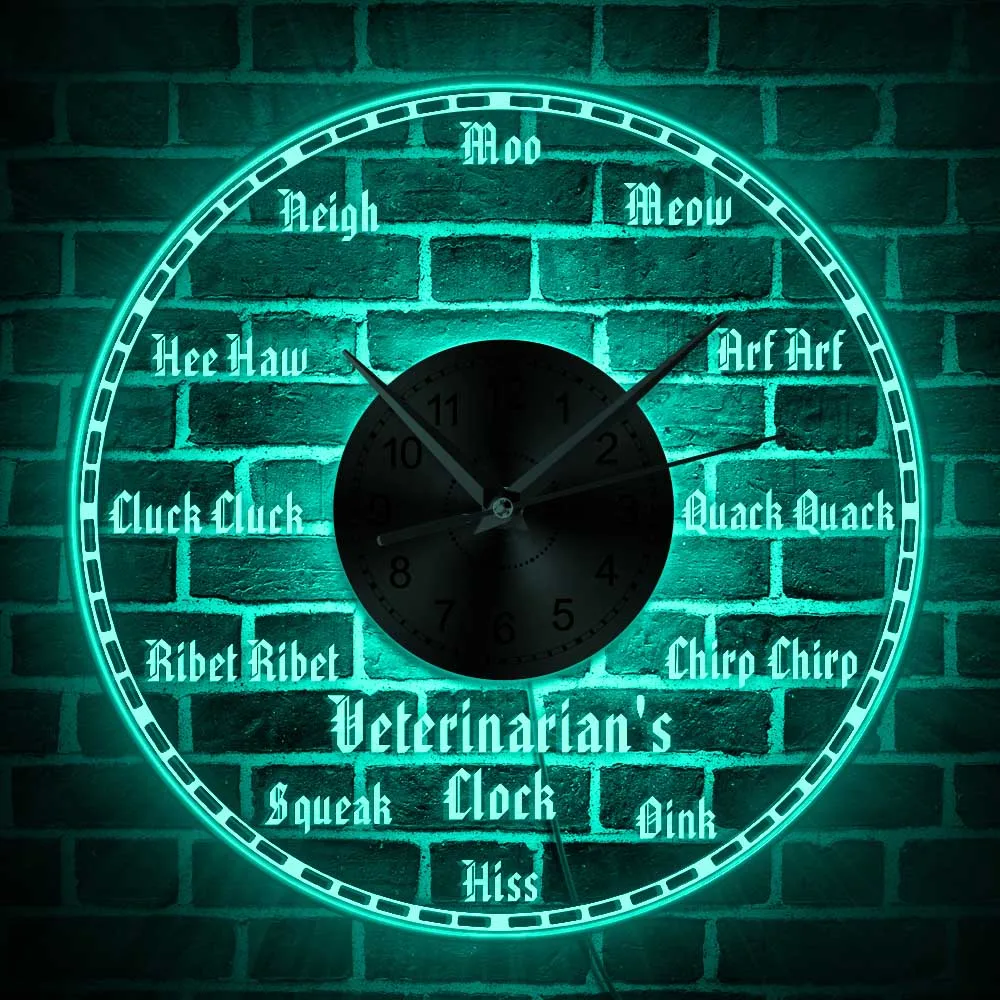 Часы настенные с расписанием ветеринара, модные настенные часы, светодиодная подсветка