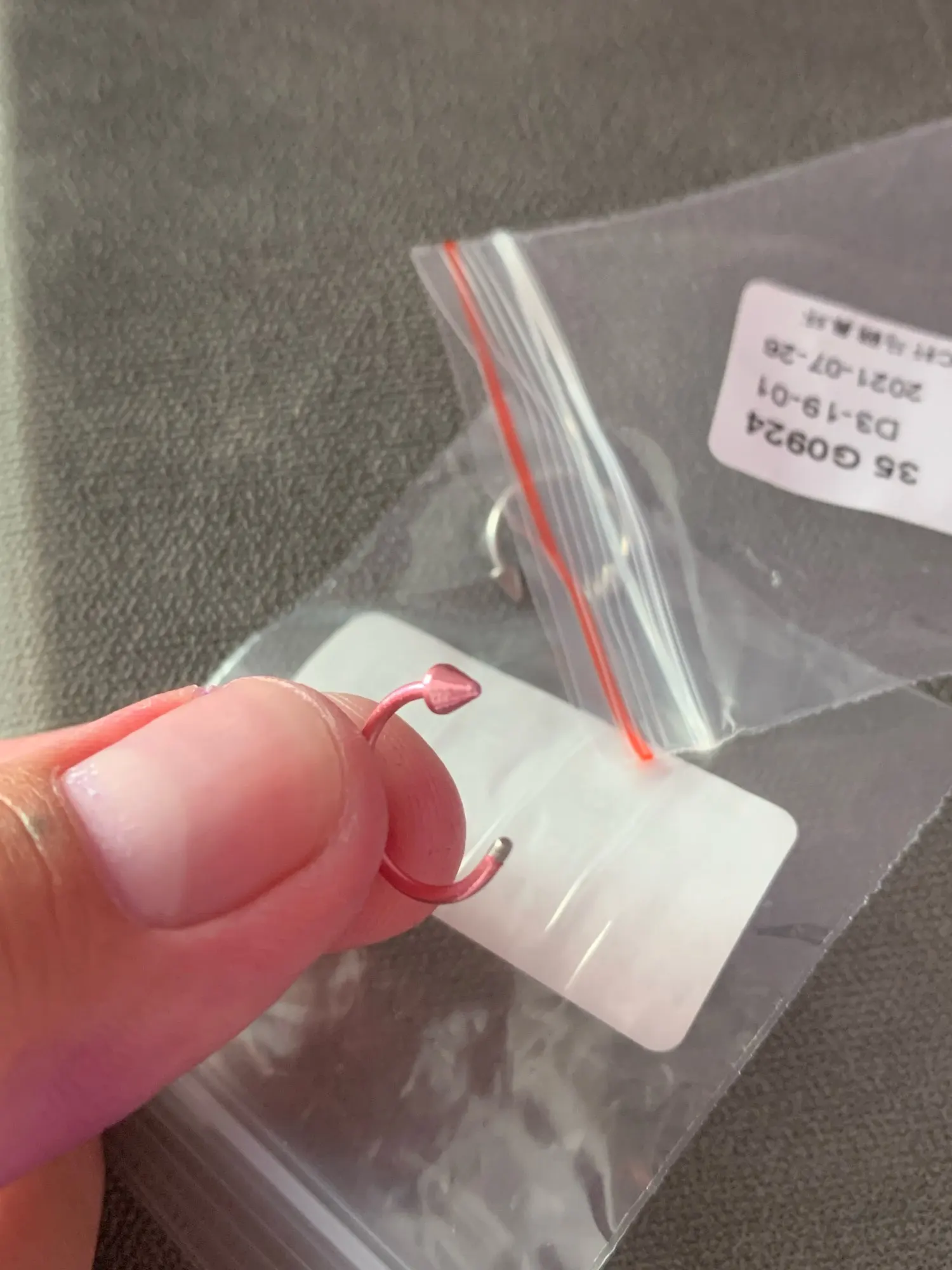 Цвет выглядит менее розовым, но все равно действительно крутым, сидит у меня в носу, шпильки/шарики не соскальзывают легко, что и является плюсом (не снимается с носа) И так же трудно отвинтить сначала lol. Хорошие ювелирные изделия в противном случае.