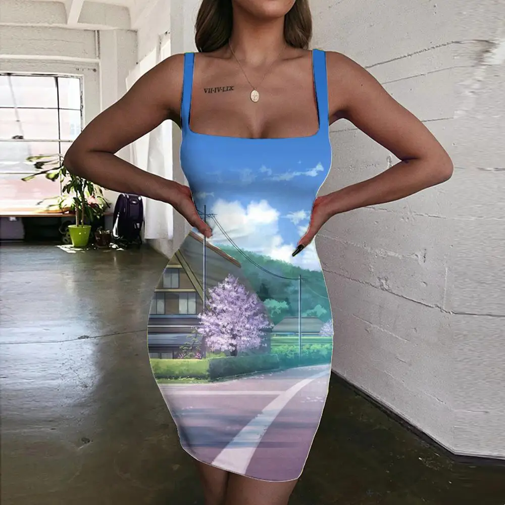 Женское облегающее платье KYKU, летнее пляжное платье с 3D-принтом,...