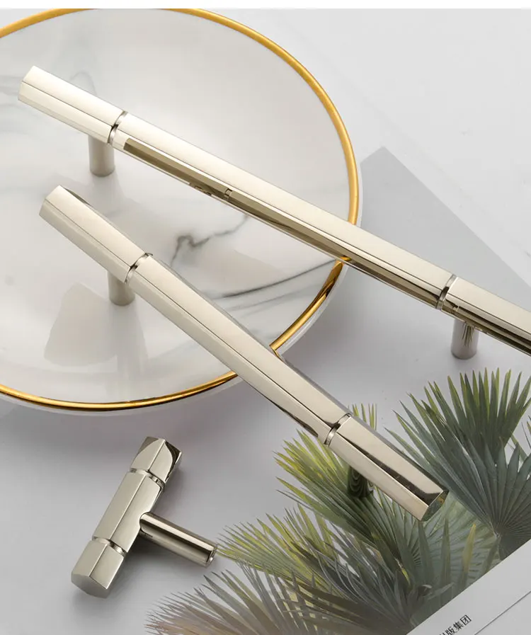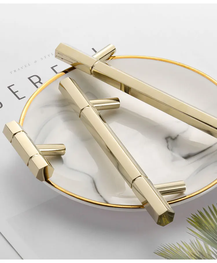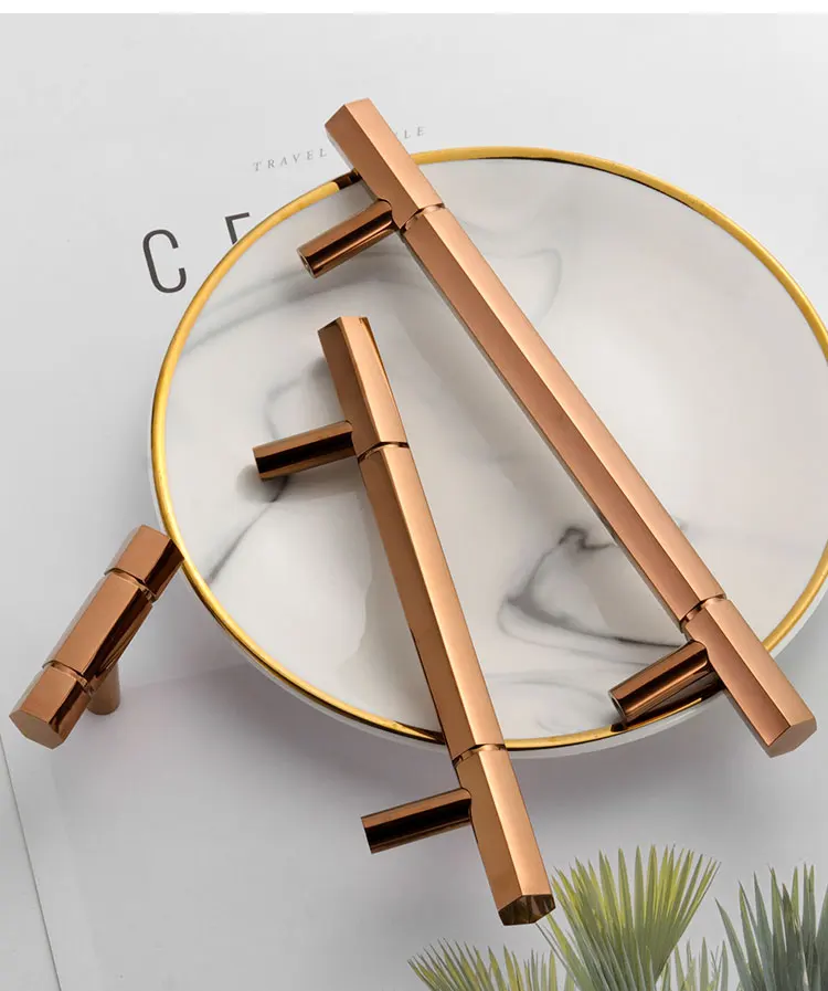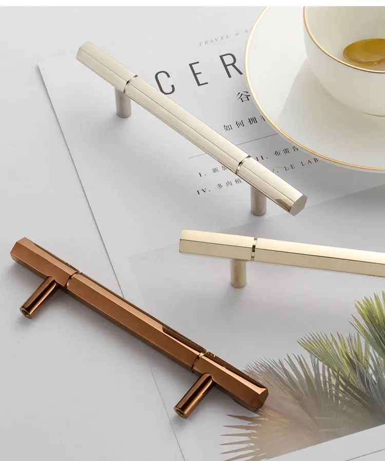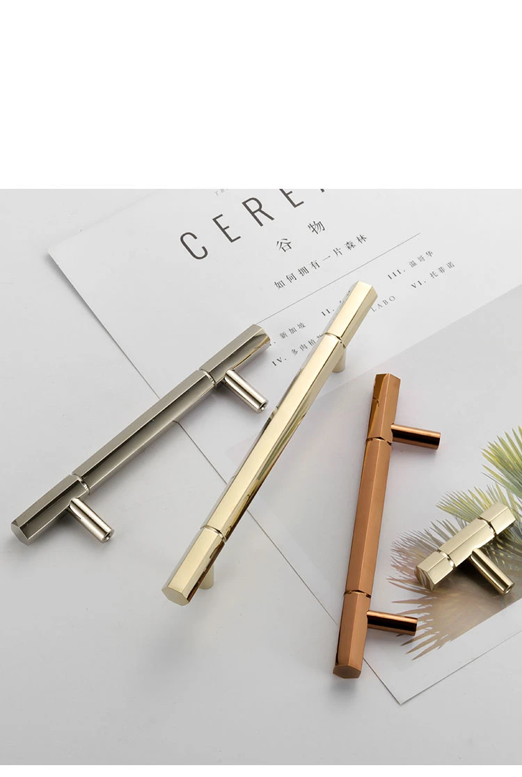Итальянская Скандинавская латунь с двойным отверстием, шестигранная длинная ручка, ящик, шкафчик, шестигранная, Золотая, серебряная, розовая, Золотая маленькая ручка