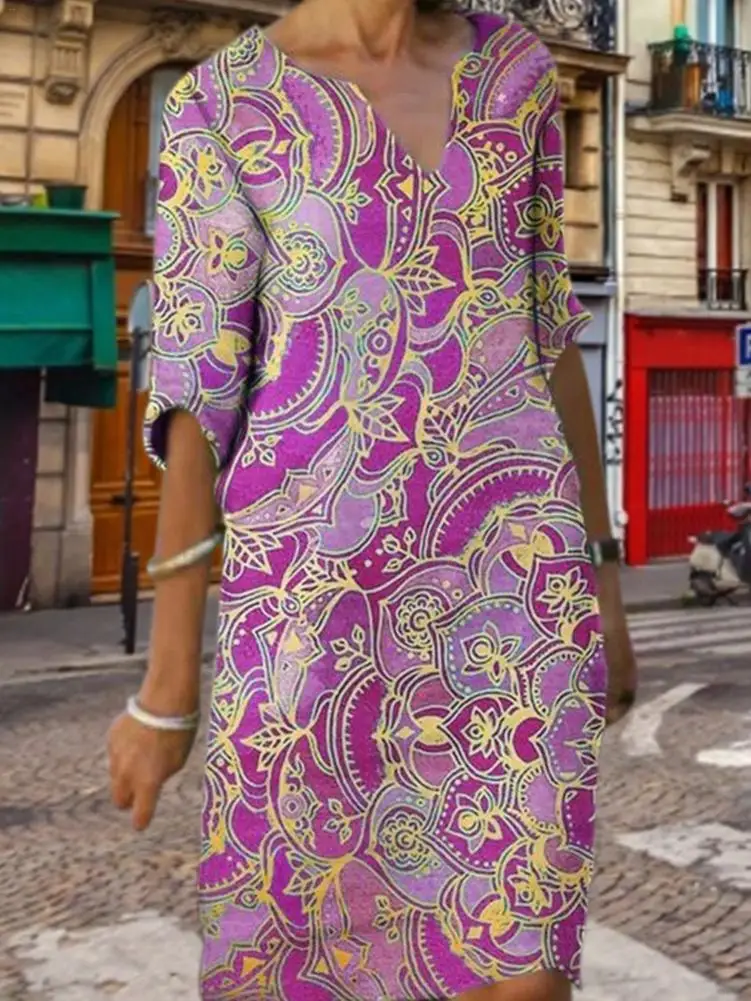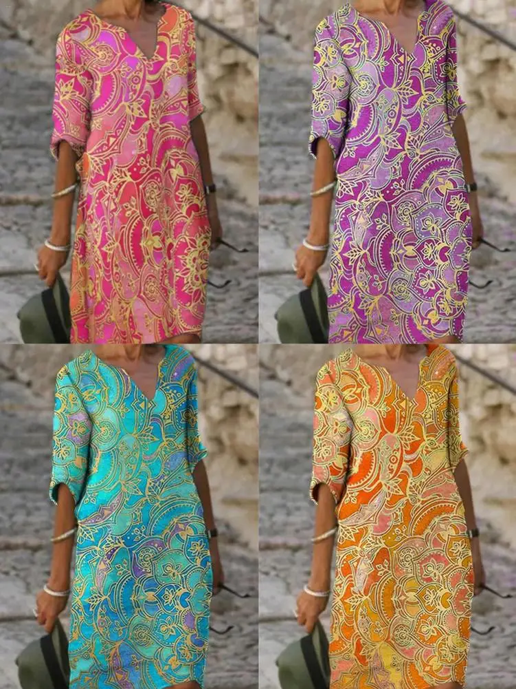 Номер моделиWomen Casual V Neck Print Dress Colorful Frock