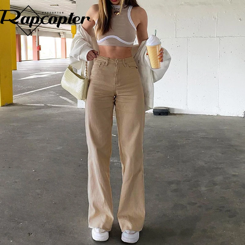 Джинсы-клеш Rapcopter цвета хаки, однотонные базовые повседневные брюки из денима с завышенной талией, винтажные мешковатые спортивные штаны для женщин, корейские Джоггеры в стиле Харадзюку