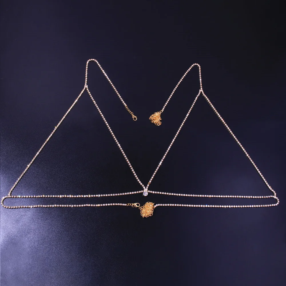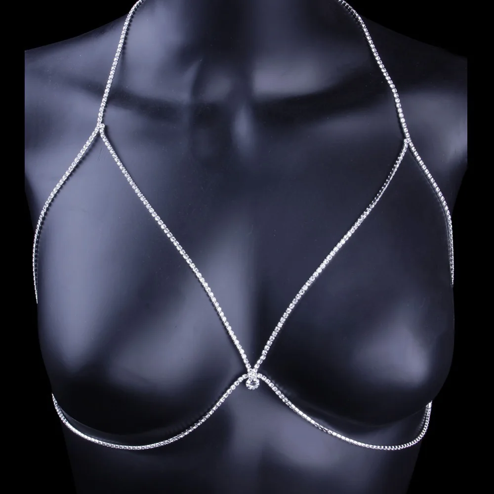 Stonefans простой Bling цепочка для тела со стразами нижнее белье бюстгальтер портупея цепи, для пляжа, сексуальное, с украшением в виде кристаллов бюстгальтер нательная цепочка под Верх купальника для Для женщин