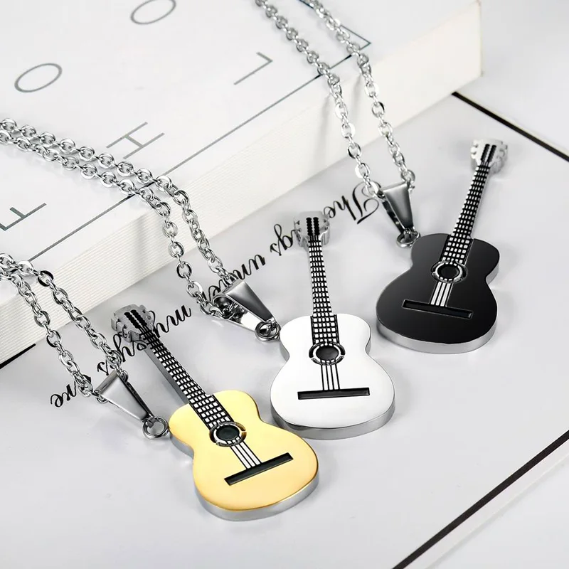 Модное ожерелье с подвеской для гитары из нержавеющей стали для муж...