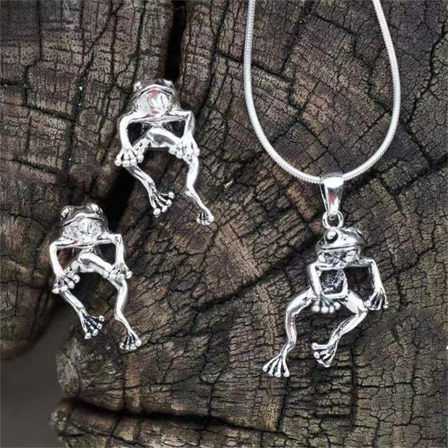 Ожерелье в ретро-стиле, серебристого цвета, в виде симпатичной лягушки