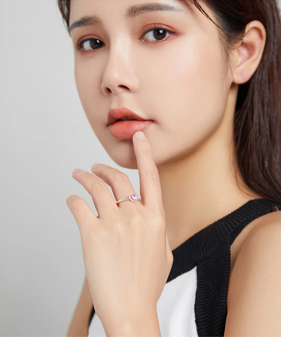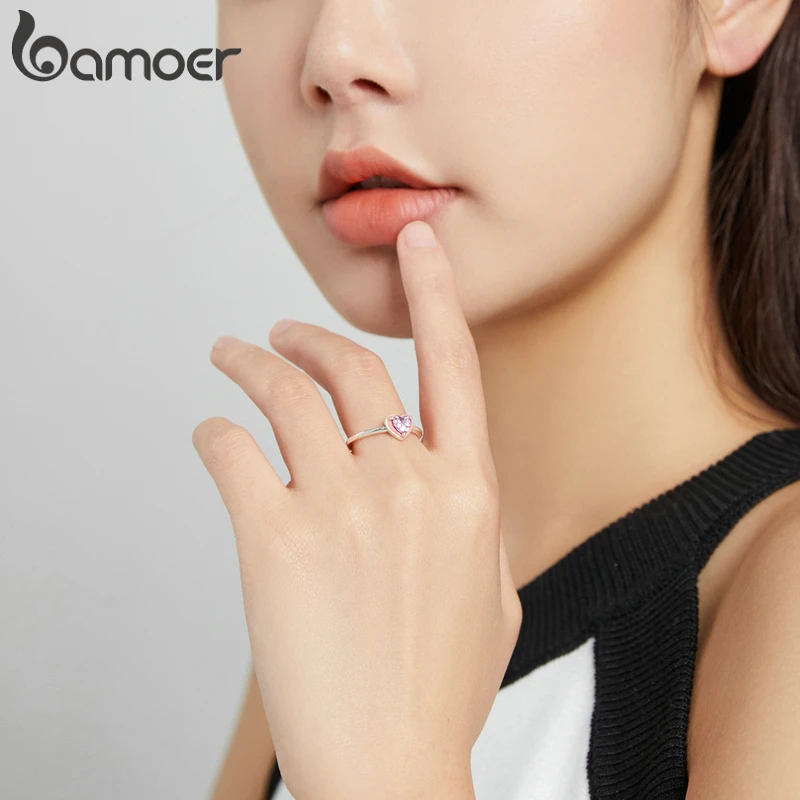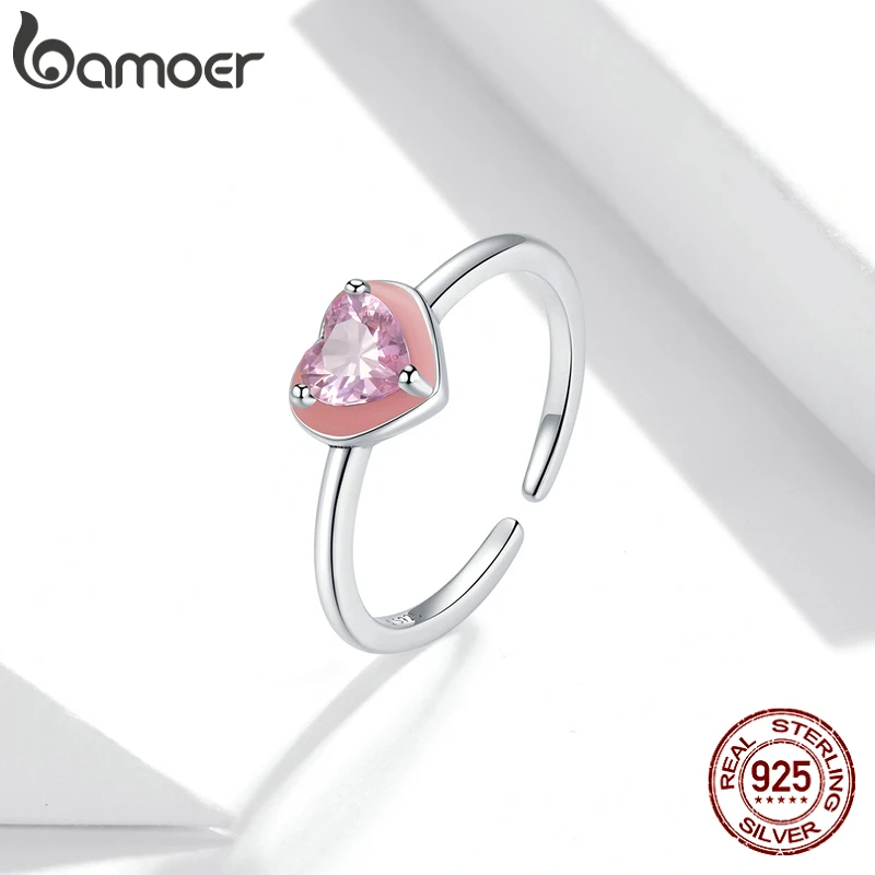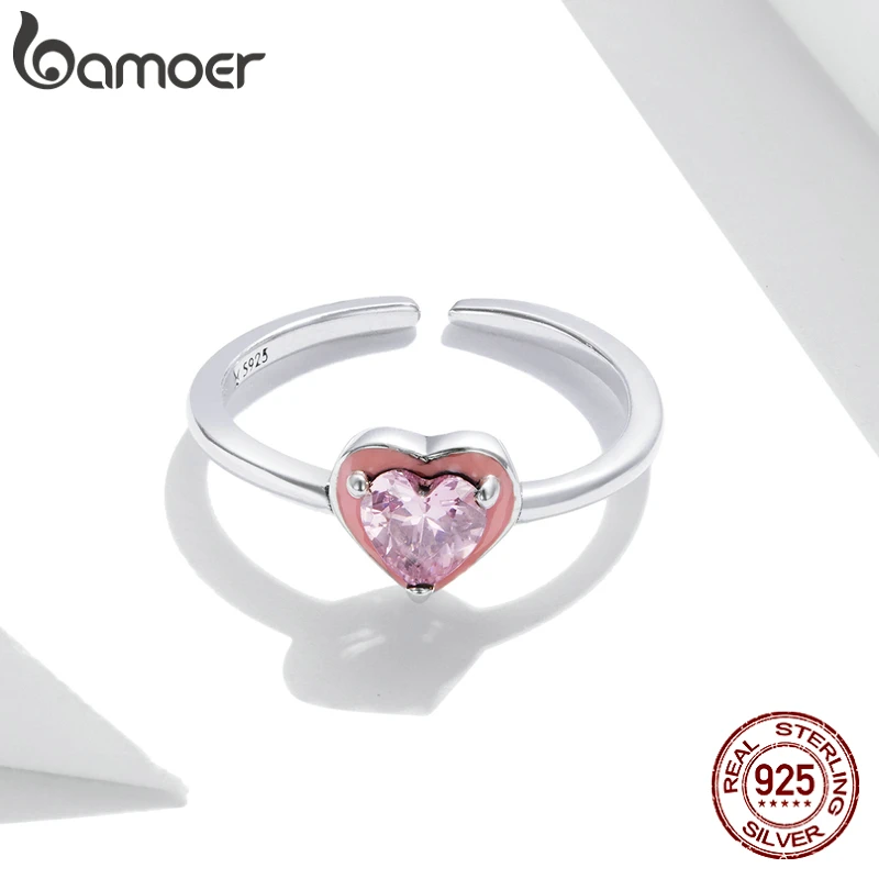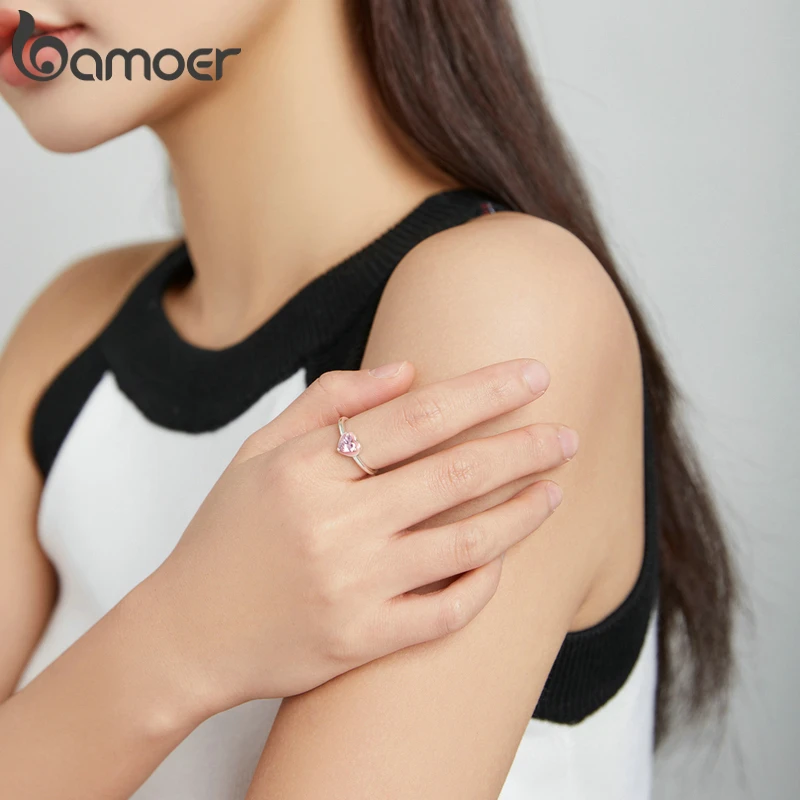 Женское регулируемое кольцо Bamoer, розовое романтическое Открытое кольцо из настоящего стерлингового серебра 925 пробы, ювелирные изделия на годовщину, GXR717
