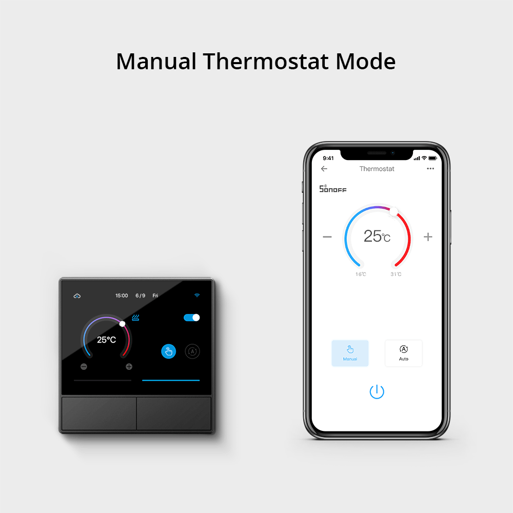 Ручной режим термостата позволяет регулировать температуру в любое время, что подходит вам и держать его равномерным и стабильным, в то время как его автоматический режим термостата предоставляет вам другие варианты. Вы можете устанавливать различные температуры в помещении в разное время суток, И NSPanel автоматически запускает нагревательные или охлаждающие устройства, чтобы сохранить температуру в помещении вашего дома в определенной точке в соответствии с вашим расписанием и настройками.