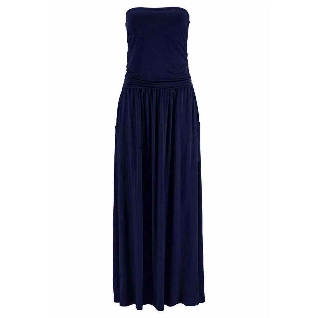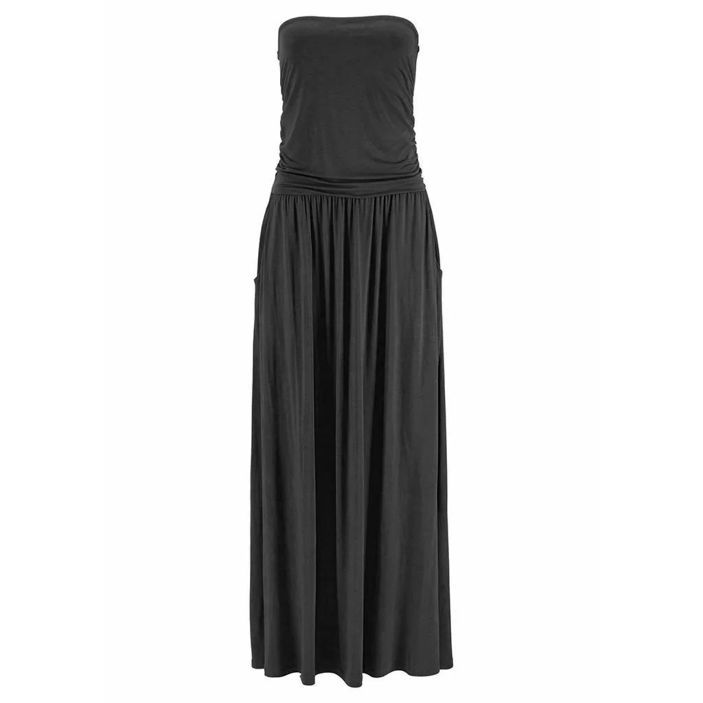 Женские Праздничное длинное платье-бандо с открытыми плечами, женское летнее однотонное платье Макси