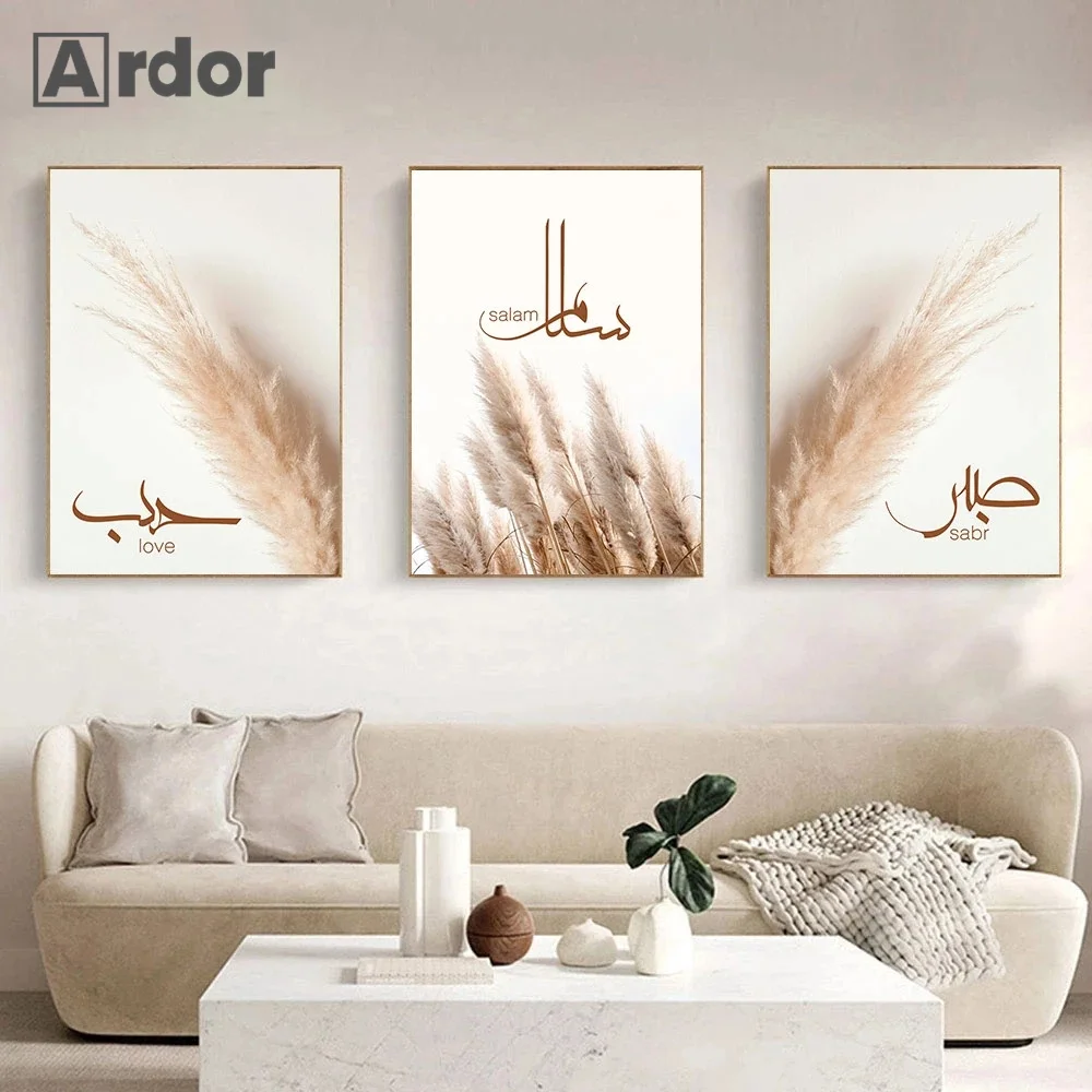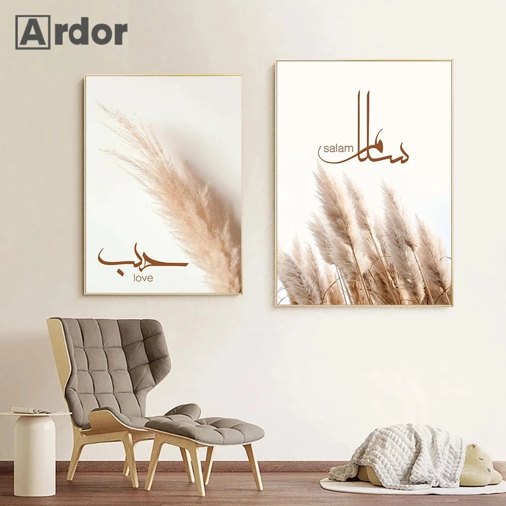 Исламская настенная Художественная печать Богемская пампасная трава Арабская Картина на холсте любовь Салам сабр каллиграфия плакаты картины декор для гостиной
