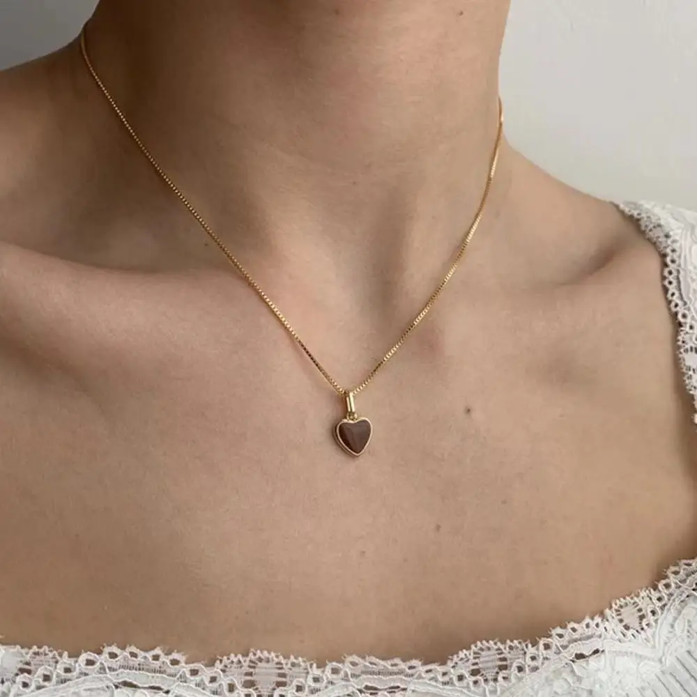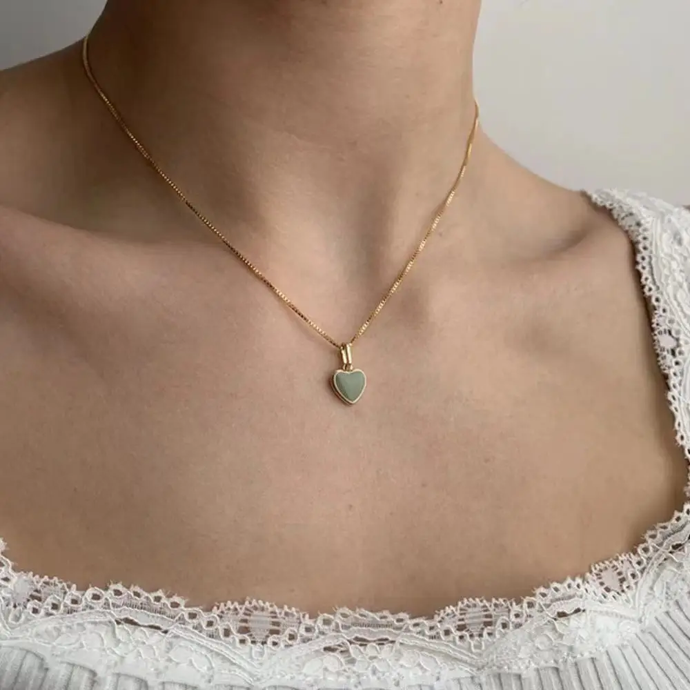 Ожерелье женское в форме сердца, с маленьким персиковым сердцем