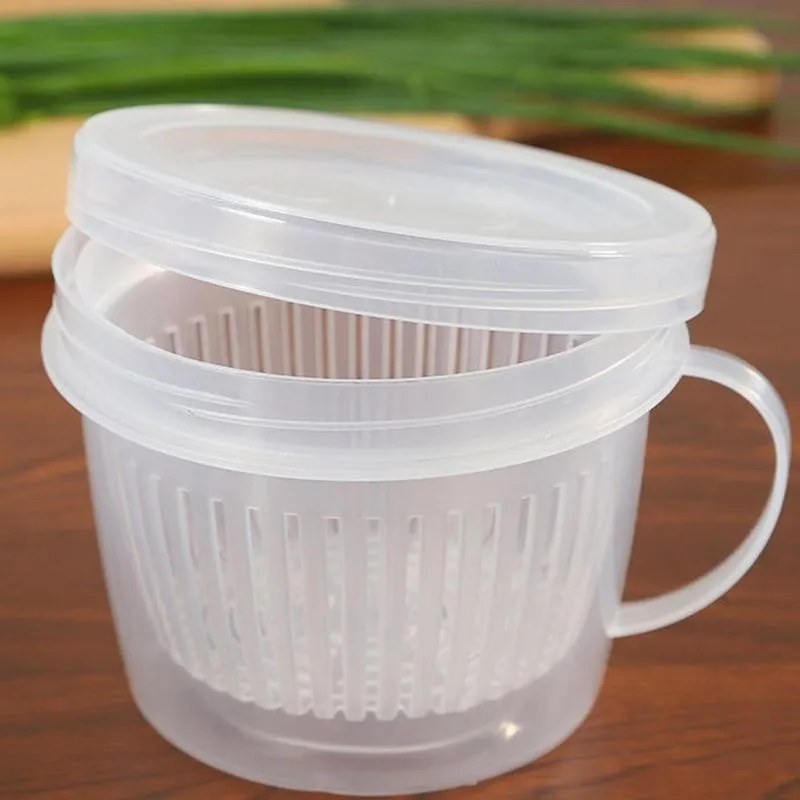 Кухонный ящик для хранения имбиря, чеснока, портативный контейнер для хранения, Пластиковый Круглый дуршлаг, ситечко для слива, герметичная коробка, контейнер