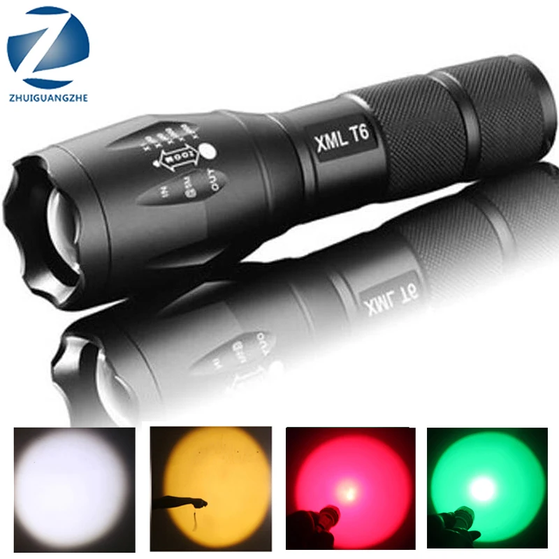 Водонепроницаемый светодиодный фонарик, портативный фонарь 5 излучаемых цветов, белый, желтый, зеленый, красный, тактический фонарь для самообороны