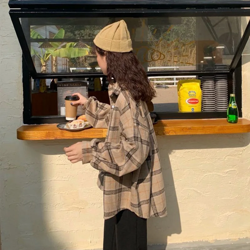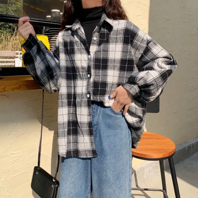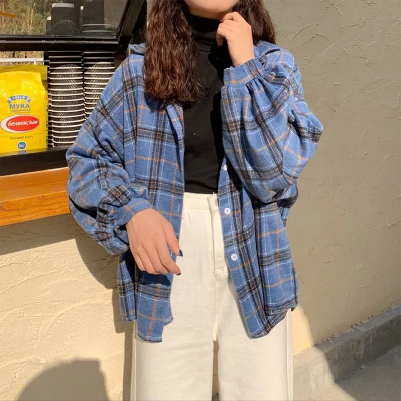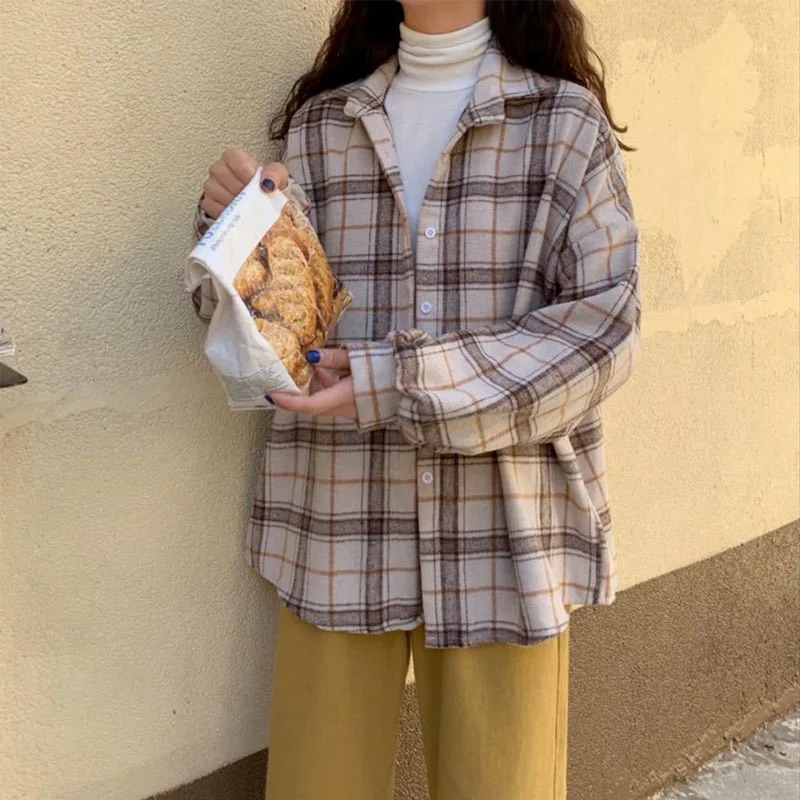 Женская блузка с отложным воротником, в клетку, 4 цвета