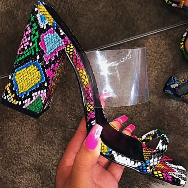 Женские босоножки со змеиным узором; Женская прозрачная обувь на вы...